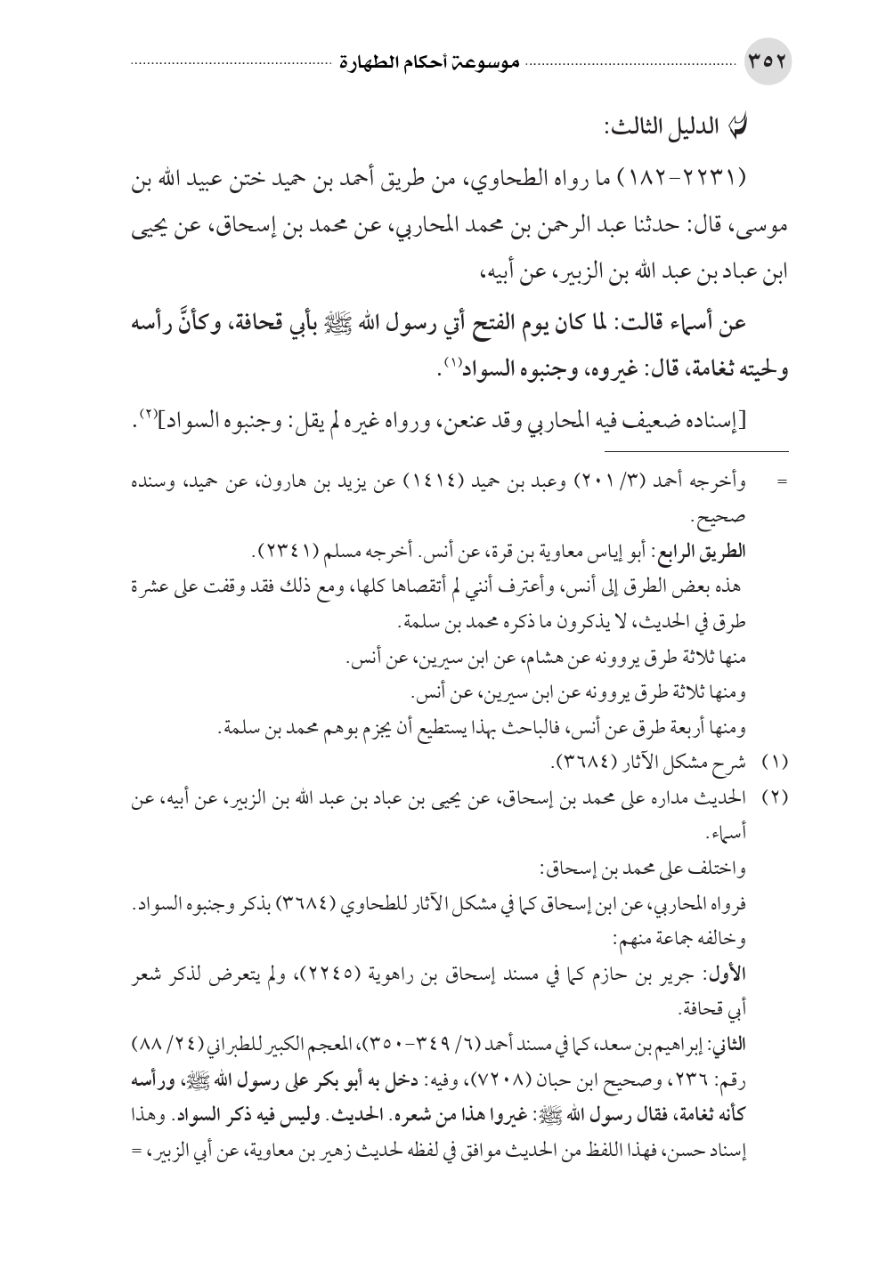 (٢٢٣١ - ١٨٢) ما رواه الطحاوي، من طريق أحمد بن حميد ختن عبيد الله بن موسى، قال: حدثنا عبد الرحمن بن محمد المحاربي، عن محمد بن إسحاق، عن يحيى ابن عباد بن عبد الله بن الزبير، عن أبيه،