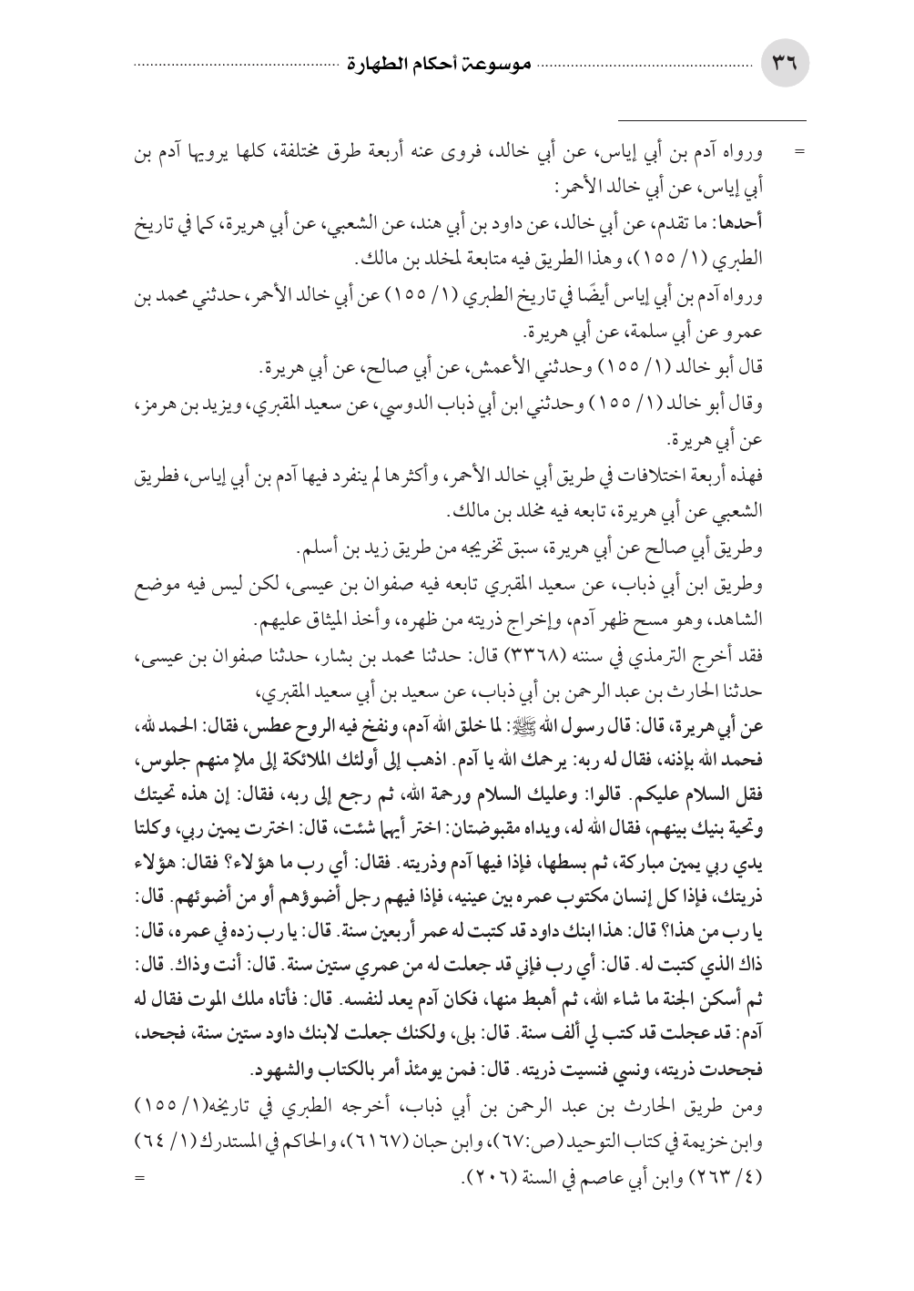 ورواه آدم بن أبي إياس أيضًا في تاريخ الطبري (١/ ١٥٥) عن أبي خالد الأحمر، حدثني محمد بن عمرو عن أبي سلمة، عن أبي هريرة.