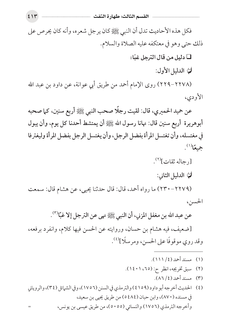عن عبد الله بن مغفل المزني، أن النبي صلى الله عليه وسلم نهى عن الترجل إلا غبًا (¬٣).