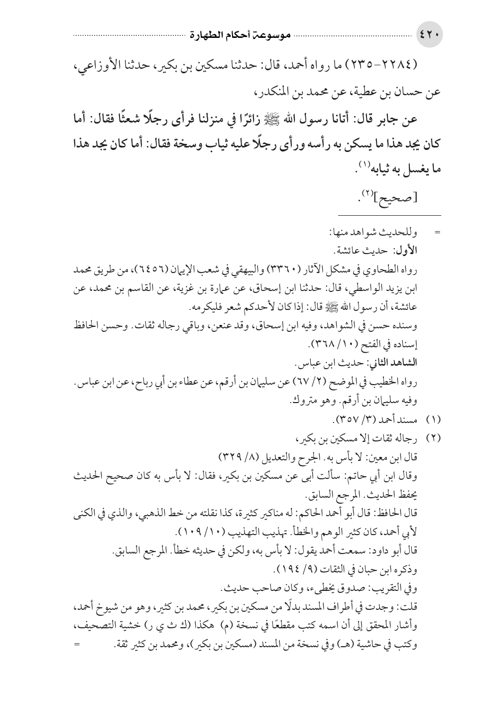 (¬٢) رجاله ثقات إلا مسكين بن بكير، قال ابن معين: لا بأس به. الجرح والتعديل (٨/ ٣٢٩)