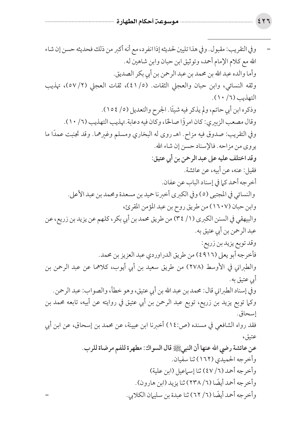والبيهقي في السنن الكبرى (١/ ٣٤) من طريق محمد بن أبي بكر، كلهم عن يزيد بن زريع، عن عبد الرحمن بن أبي عتيق به.
