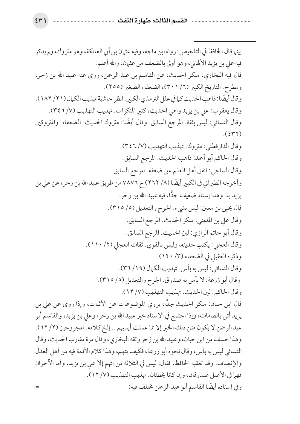 وهذا خسف من ابن حبان، وعبيد الله بن زحر وثقه البخاري، وقال مرة مقارب الحديث، وقال النسائي ليس به بأس، وقال نحوه أبو زرعة، فكيف يتهم، وهذا كلام الأئمة فيه من أهل العدل والإنصاف. وقد تعقبه الحافظ، فقال: ليس في الثلاثة من اتهم إلا علي بن يزيد، وأما الآخران فهما في الأصل صدوقان، وإن كانا يخطئان. تهذيب التهذيب (٧/ ١٢).