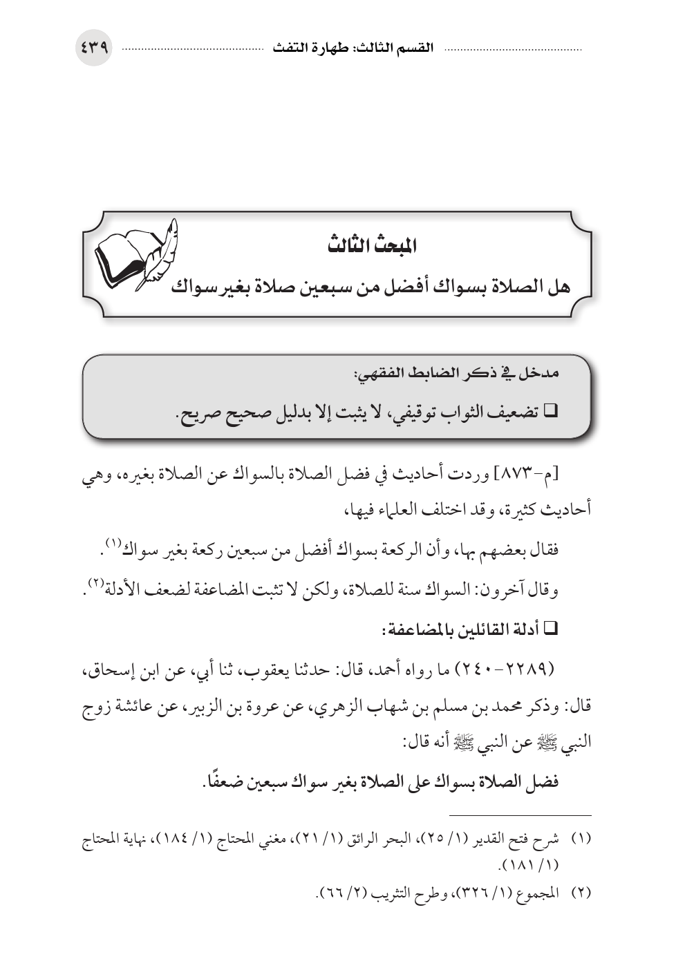 المبحث الثالث هل الصلاة بسواك أفضل من سبعين صلاة بغير سواك