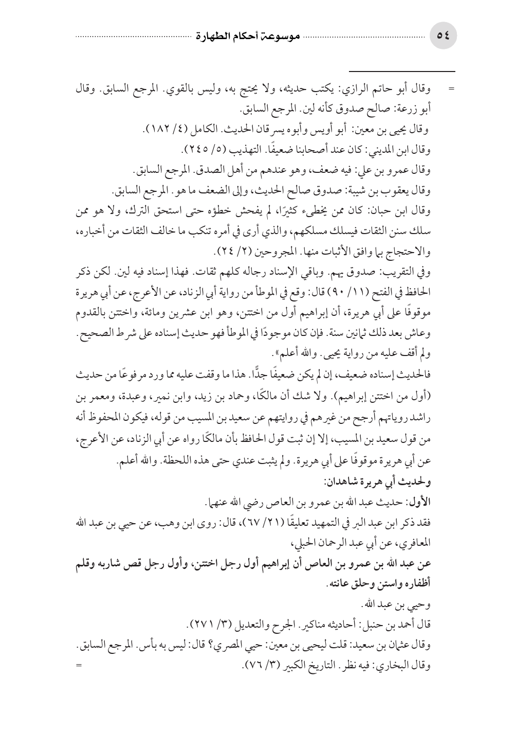 وفي التقريب: صدوق يهم. وباقي الإسناد رجاله كلهم ثقات. فهذا إسناد فيه لين. لكن ذكر الحافظ في الفتح (١١/ ٩٠) قال: وقع في الموطأ من رواية أبي الزناد، عن الأعرج، عن أبي هريرة موقوفًا على أبي هريرة، أن إبراهيم أول من اختتن، وهو ابن عشرين ومائة، واختتن بالقدوم وعاش بعد ذلك ثمانين سنة. فإن كان موجودًا في الموطأ فهو حديث إسناده على شرط الصحيح. ولم أقف عليه من رواية يحيى. والله أعلم».