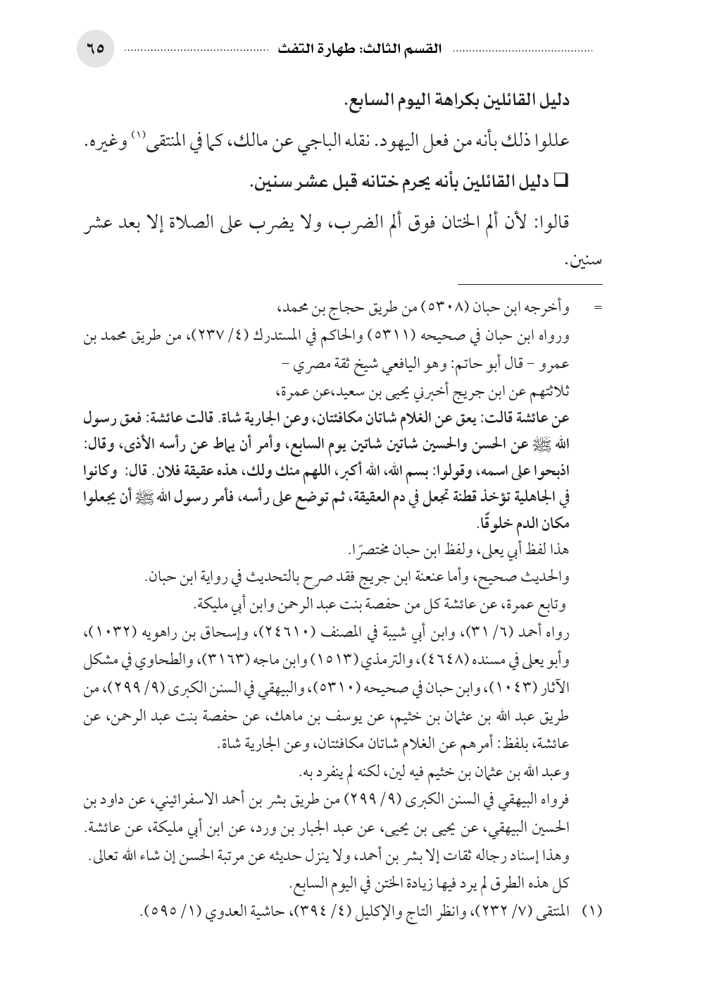 • دليل القائلين بأنه يحرم ختانه قبل عشر سنين.
