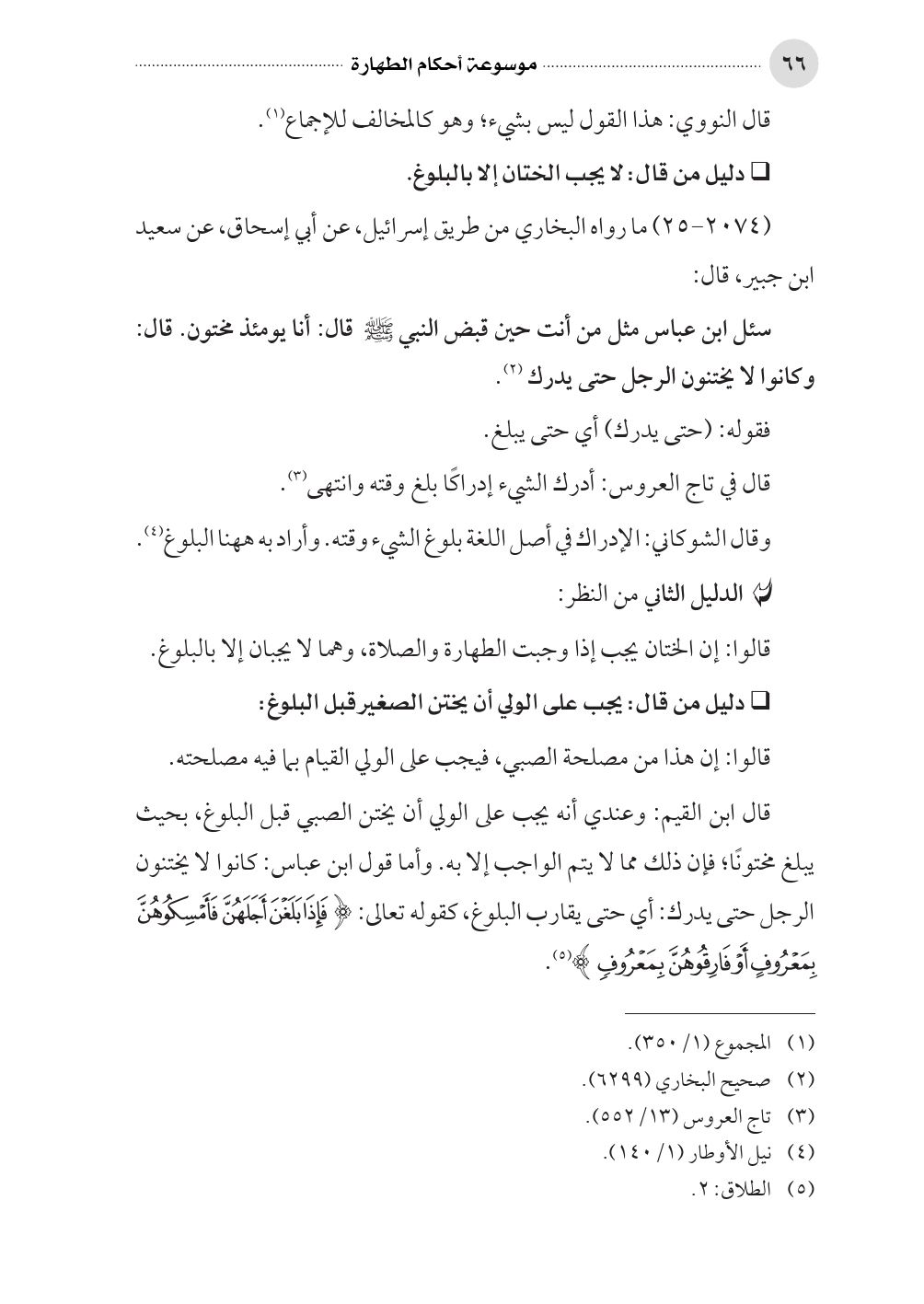 • دليل من قال: لا يجب الختان إلا بالبلوغ.