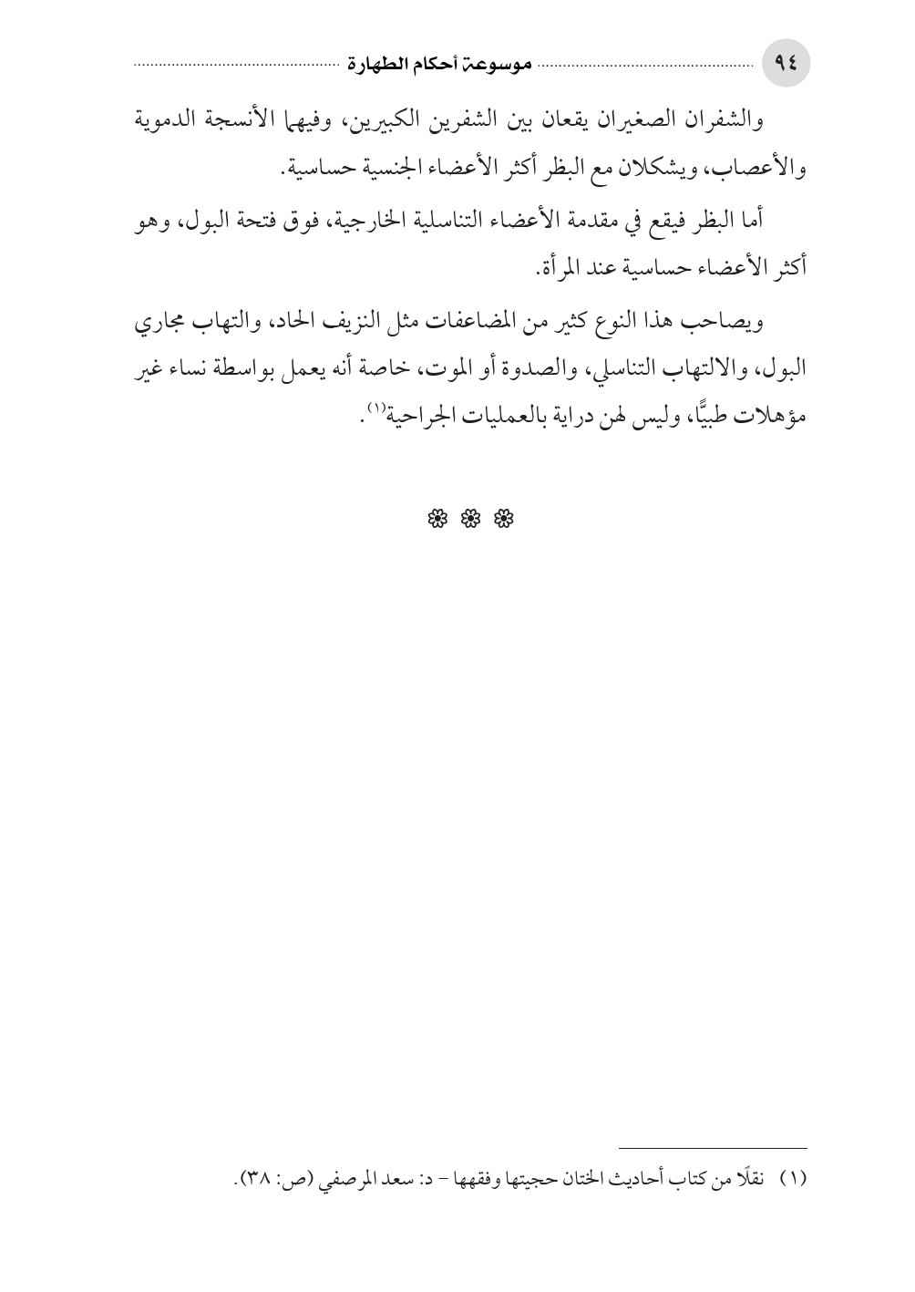 (¬١) نقلًا من كتاب أحاديث الختان حجيتها وفقهها - د: سعد المرصفي (ص: ٣٨).