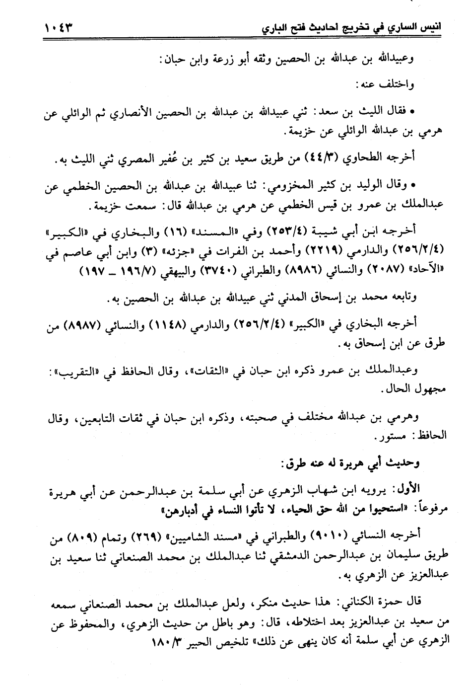 • فقال الليث بن سعد: ثني عبيد الله بن عبد الله بن الحصين الأنصاري ثم الوائلي عن هرمي بن عبد الله الوائلي عن خزيمة.
