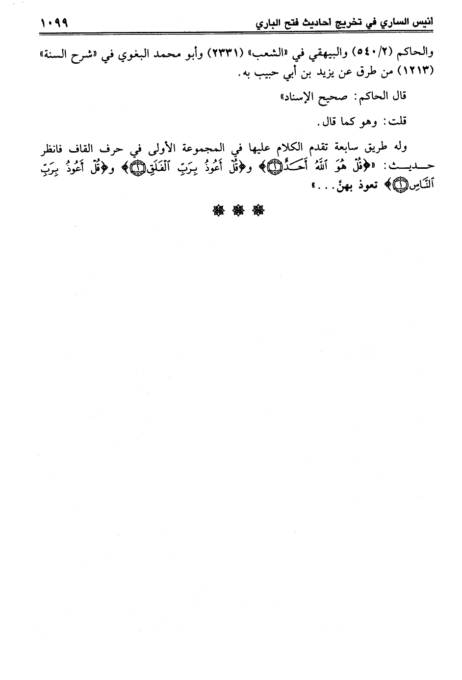 وله طريق سابعة تقدم الكلام عليها في المجموعة الأولى في حرف القاف فانظر حديث: {قُلْ هُوَ الله أَحَدٌ (1)} و {قُلْ أَعُوذُ بِرَبِّ الْفَلَقِ (1)} و {قُلْ أَعُوذُ بِرَبِّ النَّاسِ (1)} تعوذ بهنَّ ... ".