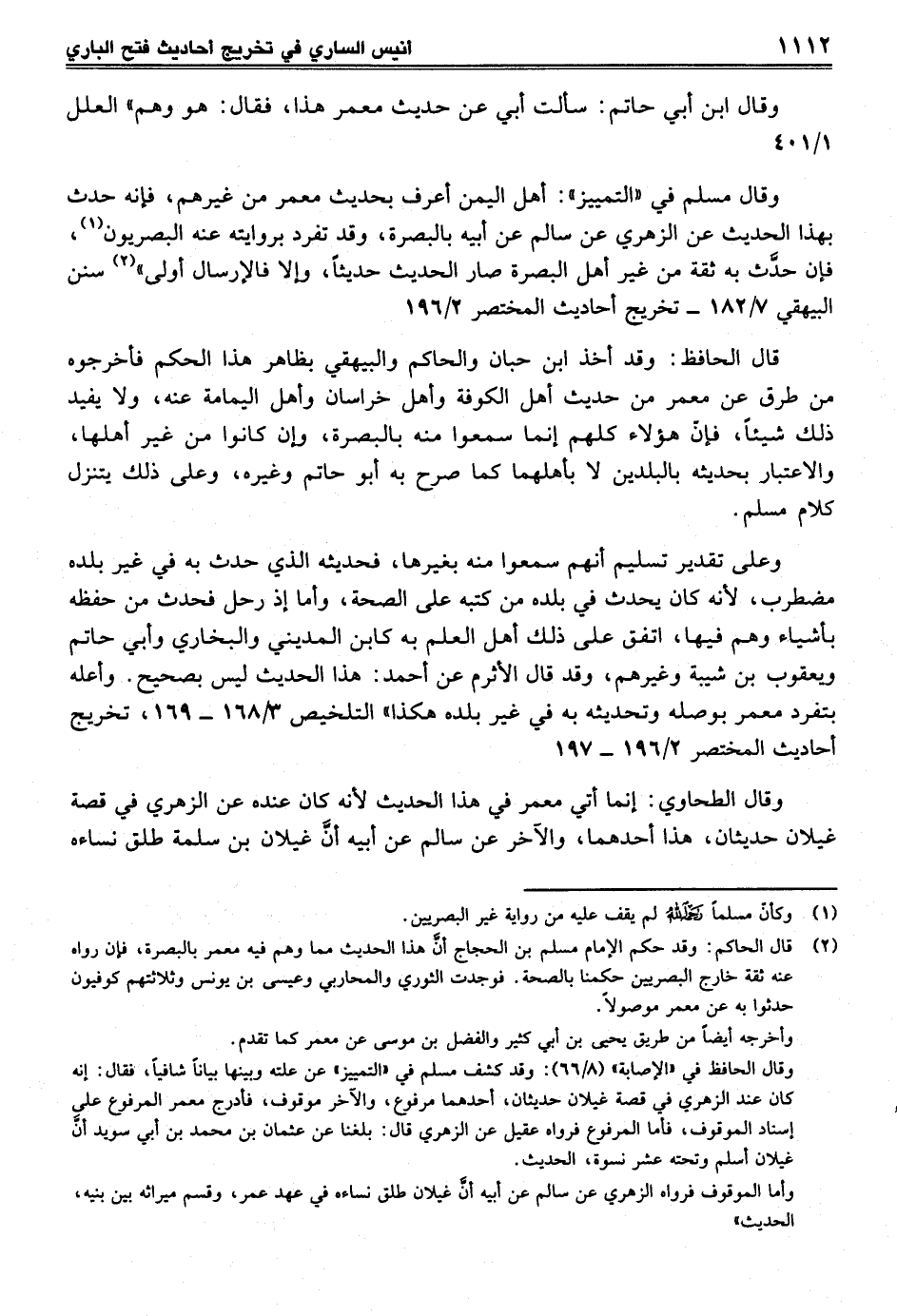 وقال مسلم في "التمييز": أهل اليمن أعرف بحديث معمر من غيرهم، فإنه حدث بهذا الحديث عن الزهري عن سالم عن أبيه بالبصرة، وقد تفرد بروايته عنه البصريون (¬1)، فإن حدَّث به ثقة من غير أهل البصرة صار الحديث حديثاً، وإلا فالإرسال أولى" (¬2) سنن البيهقي 7/ 182 - تخريج أحاديث المختصر 2/ 196