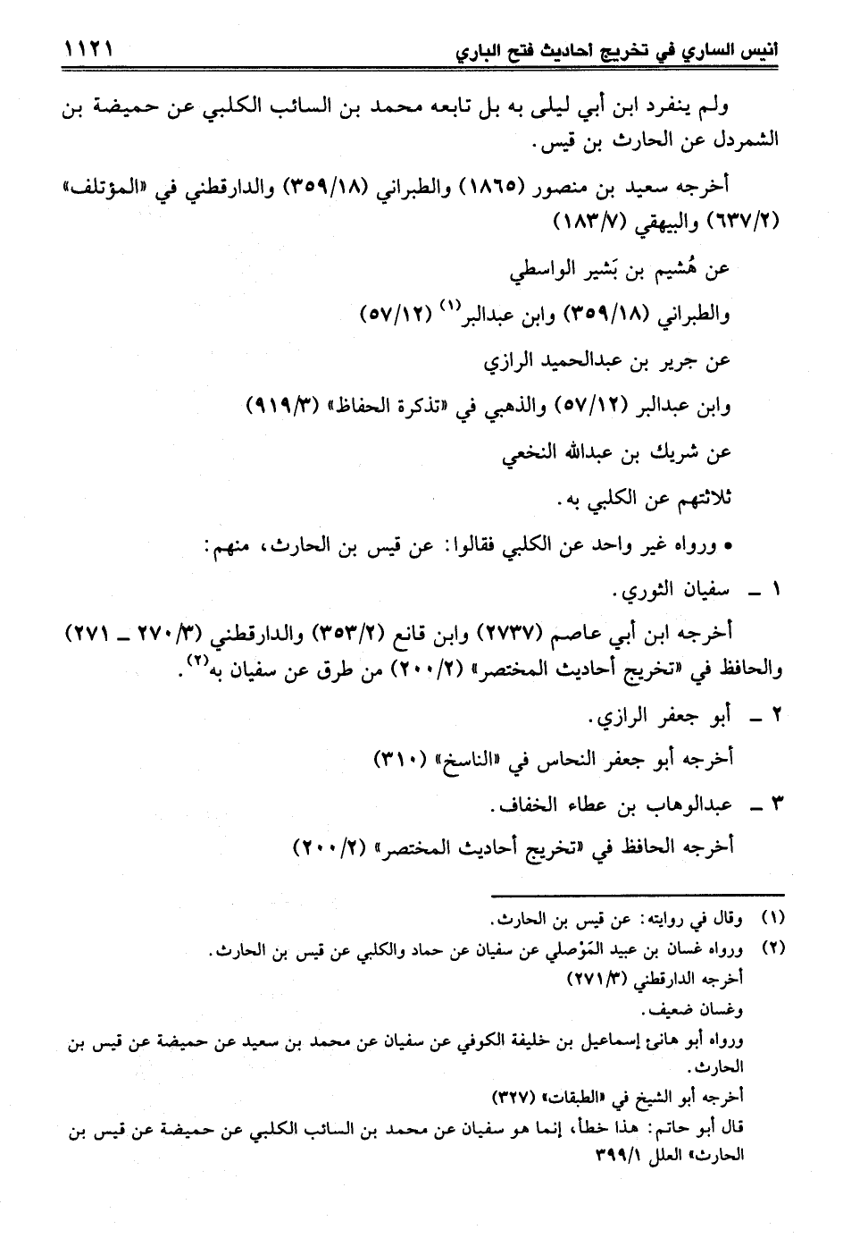 (¬2) ورواه غسان بن عبيد المَوصلي عن سفيان عن حماد والكلبى عن قيس بن الحارث.