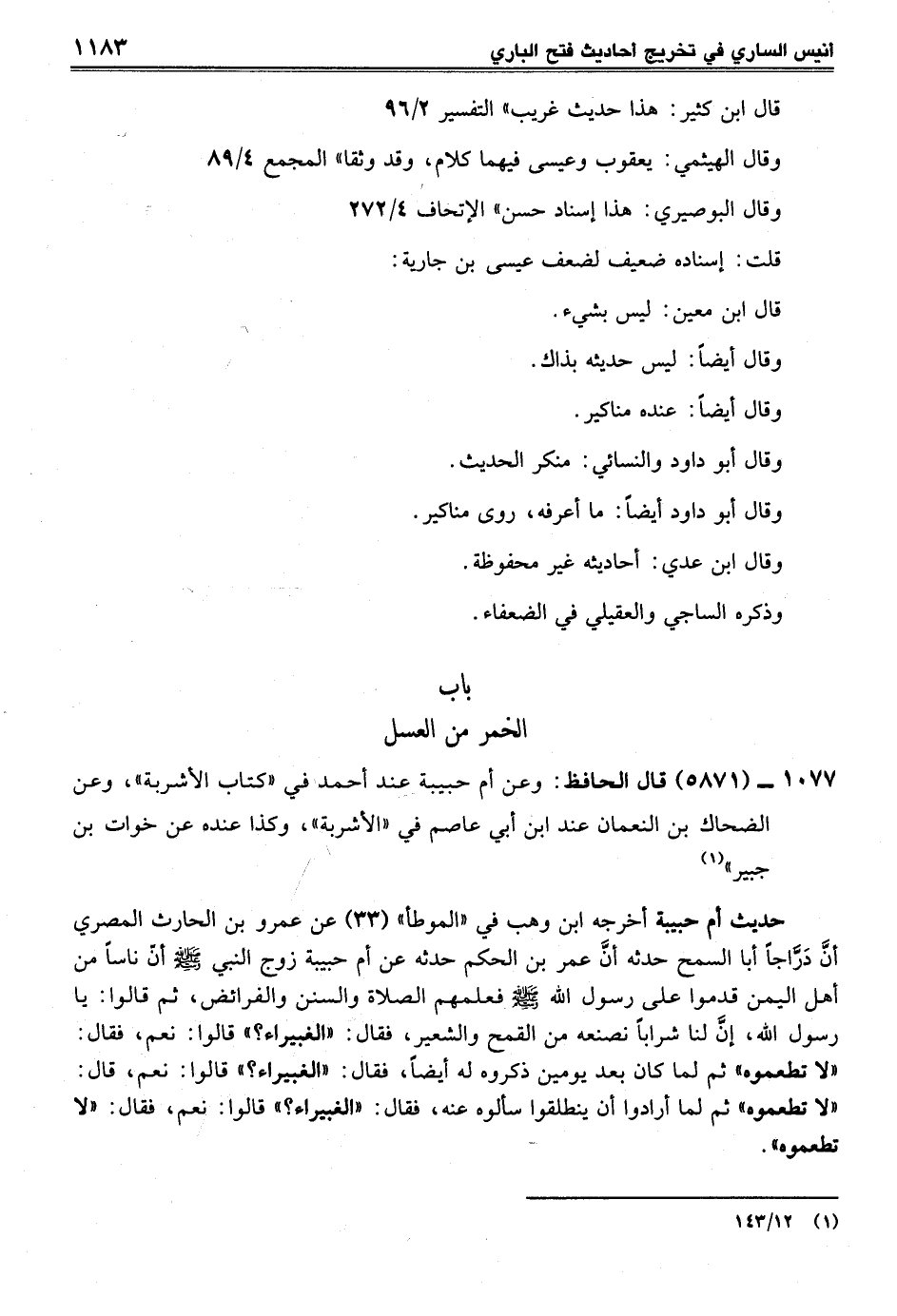 1077 - (5871) قال الحافظ: وعن أم حبيبة عند أحمد في "كتاب الأشربة"، وعن الضحاك بن النعمان عند ابن أبي عاصم في "الأشربة"، وكذا عنده عن خوات بن جبير" (¬1)