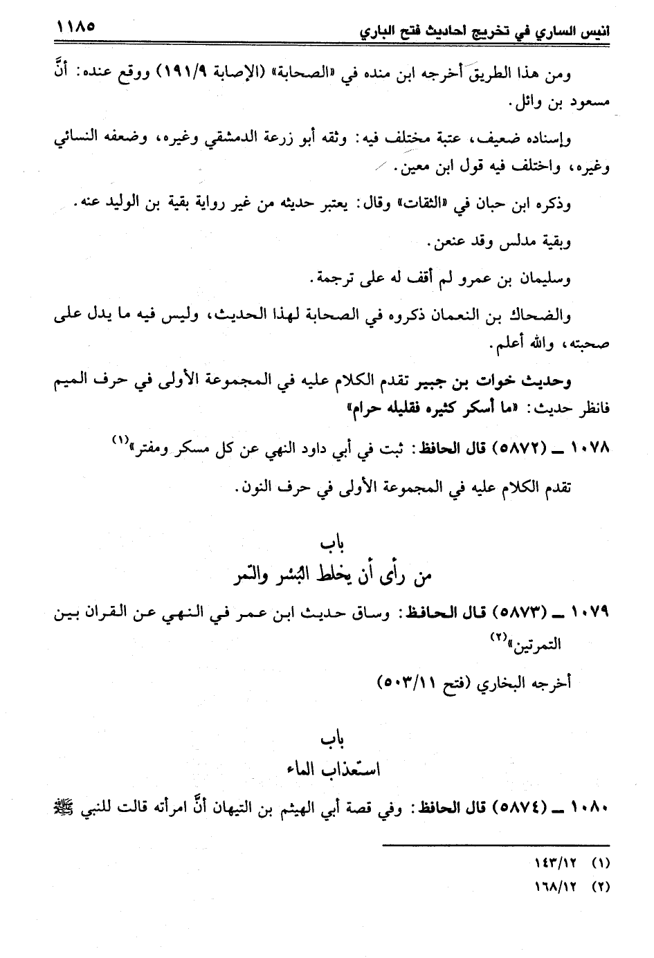 1079 - (5873) قال الحافظ: وساق حديث ابن عمر في النهي عن القران بين التمرتين" (¬2)