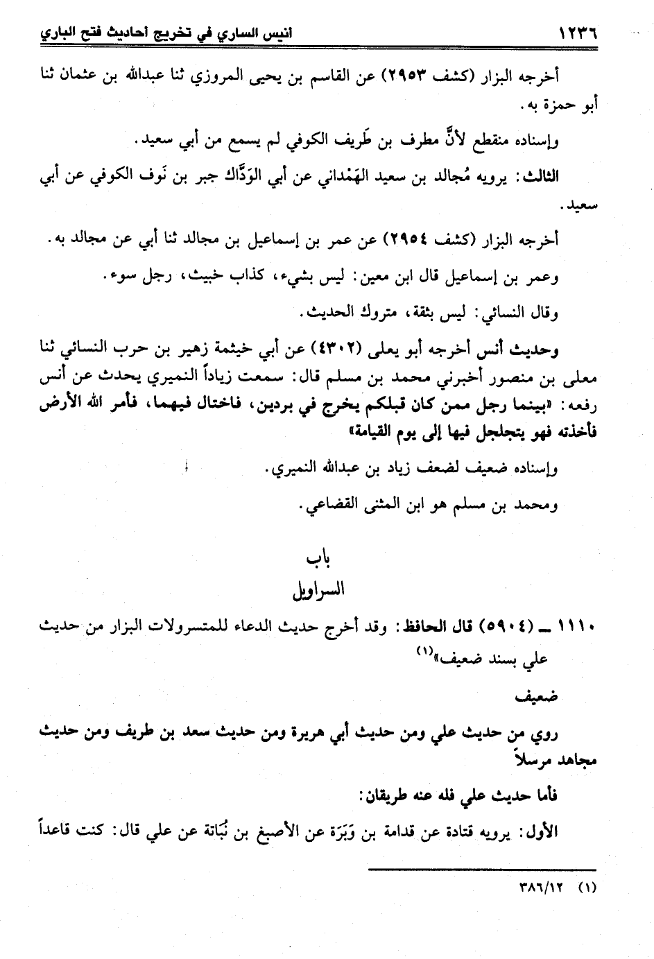 1110 - (5904) قال الحافظ: وقد أخرج حديث الدعاء للمتسرولات البزار من حديث علي بسند ضعيف" (¬1)