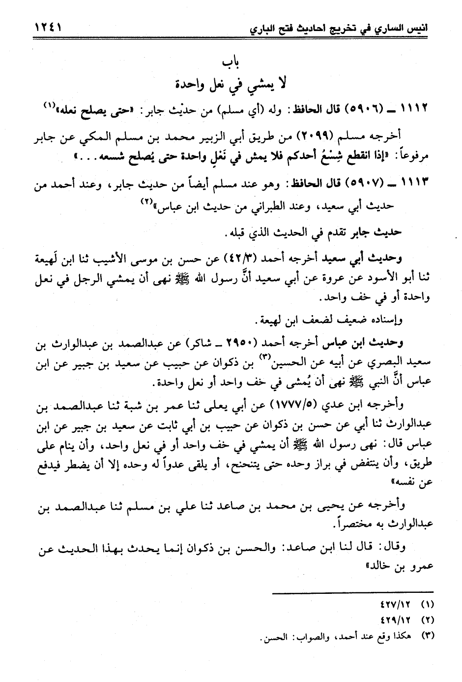 1112 - (5906) قال الحافظ: وله (أي مسلم) من حديث جابر: "حتى يصلح نعله" (¬1)