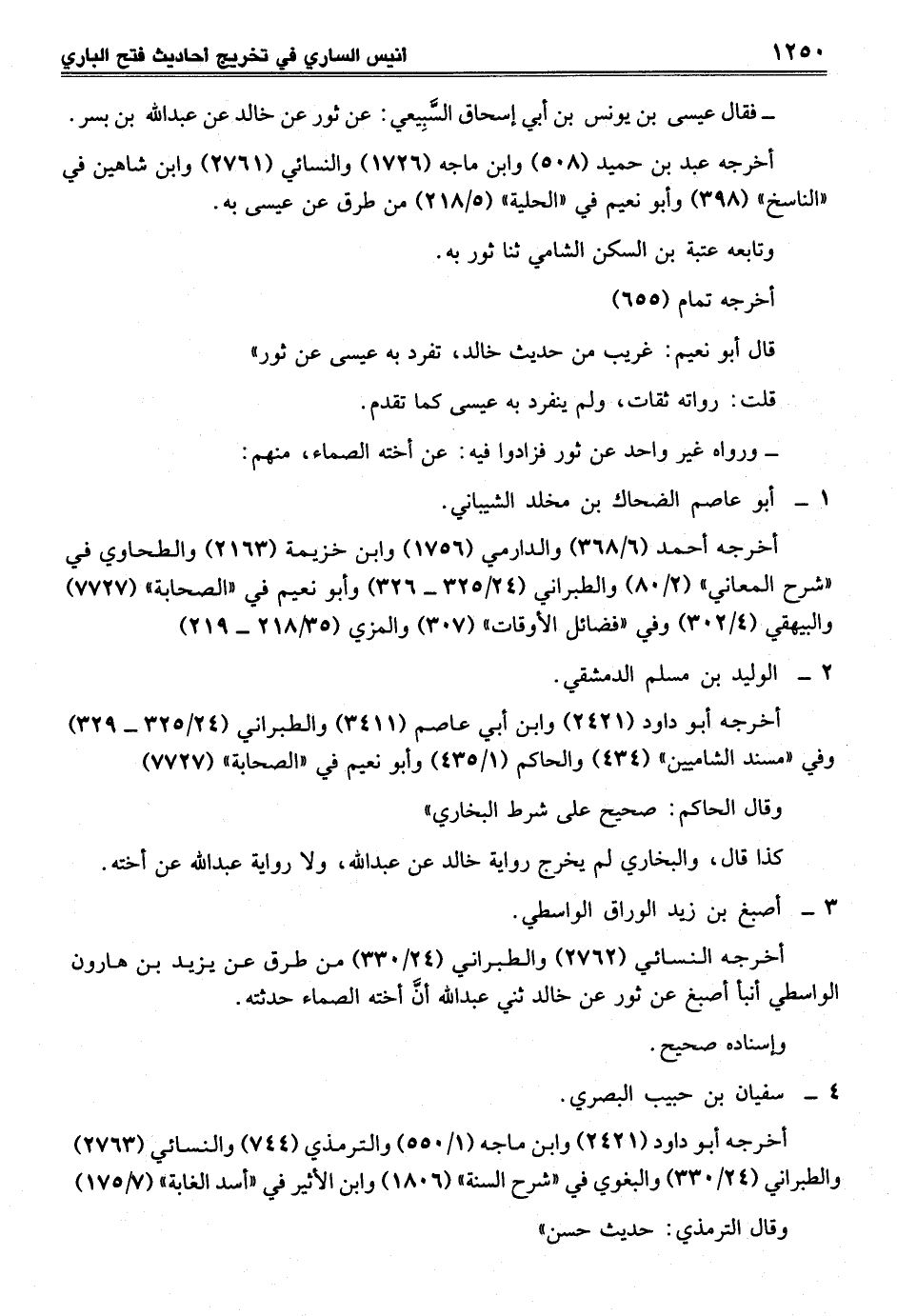 - فقال عيسى بن يونس بن أبي إسحاق السَّبِيعي: عن ثور عن خالد عن عبد الله بن بسر.