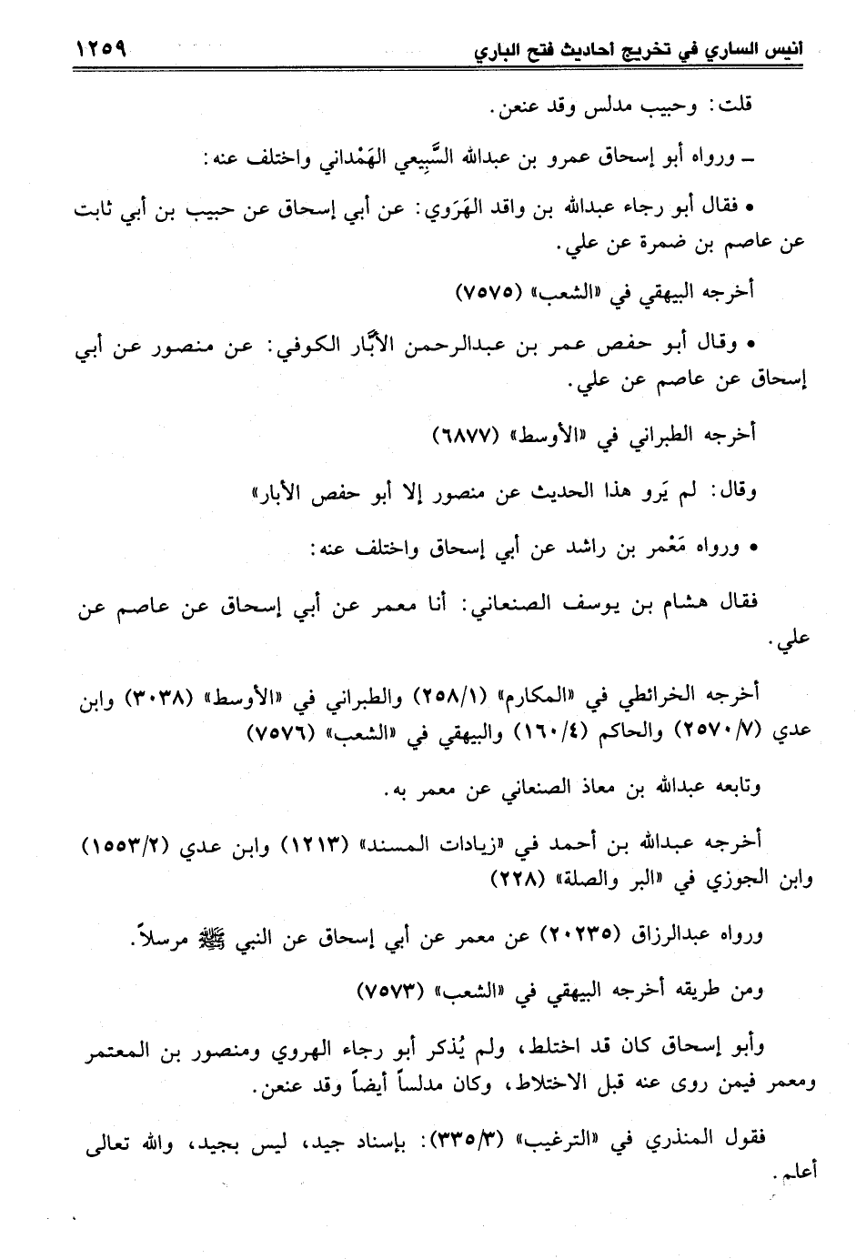 كتاب أنيس الساري (تخريج أحاديث فتح الباري) (اسم الجزء: 11)