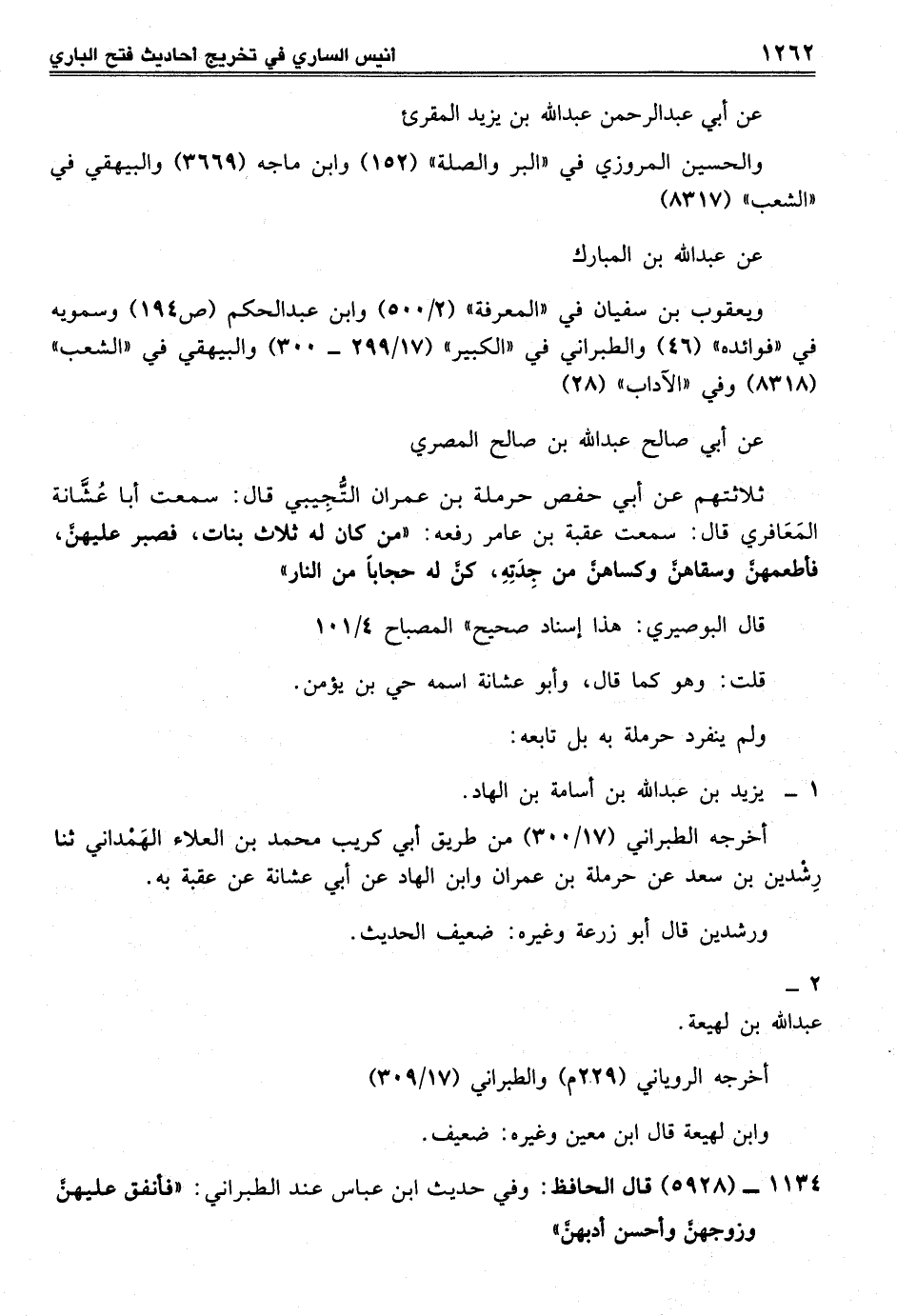 1134 - (5928) قال الحافظ: وفي حديث ابن عباس عند الطبراني: "فأنفق عليهنَّ وزوجهنَّ وأحسن أدبهنَّ"