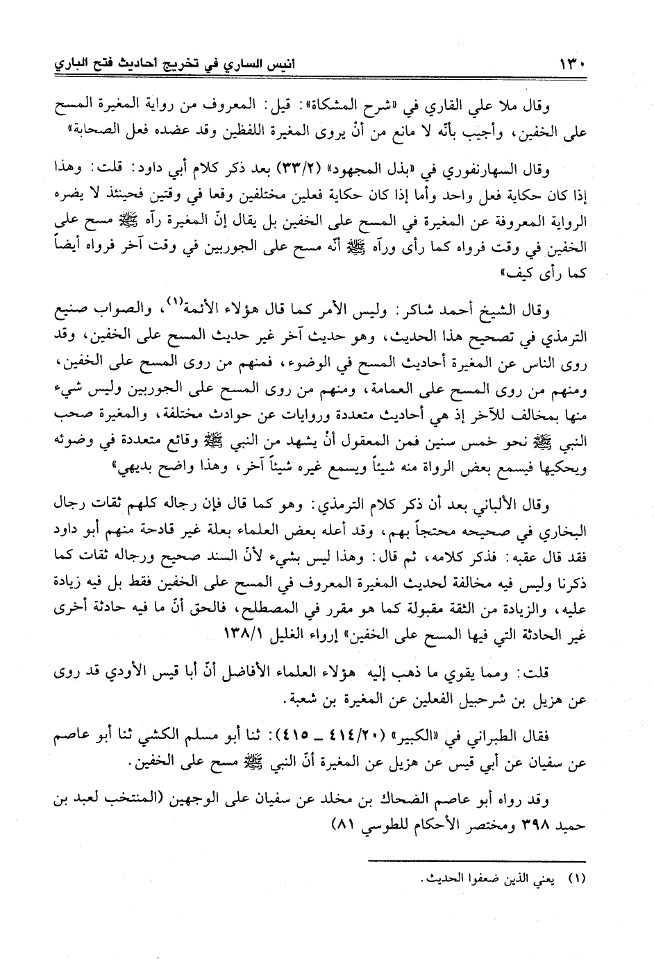 وقال ملا علي القاري في "شرح المشكاة": قيل: المعروف من رواية المغيرة المسح على الخفين، وأجيب بأنّه لا مانع من أنْ يروى المغيرة اللفظين وقد عضده فعل الصحابة"