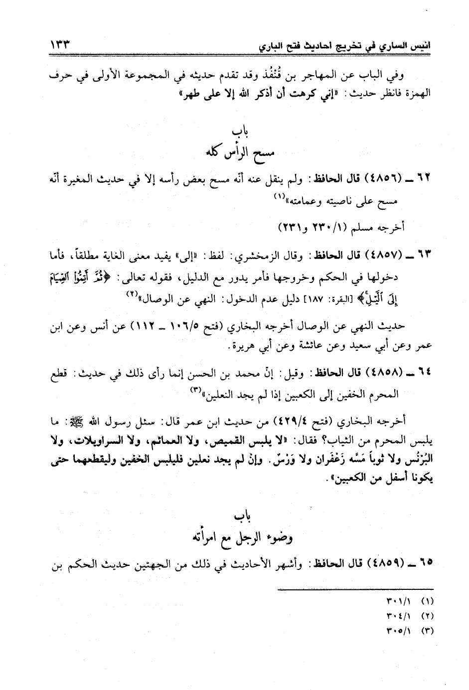 62 - (4856) قال الحافظ: ولم ينقل عنه أنّه مسح بعض رأسه إلا في حديث المغيرة أنّه مسح على ناصيته وعمامته" (¬1)