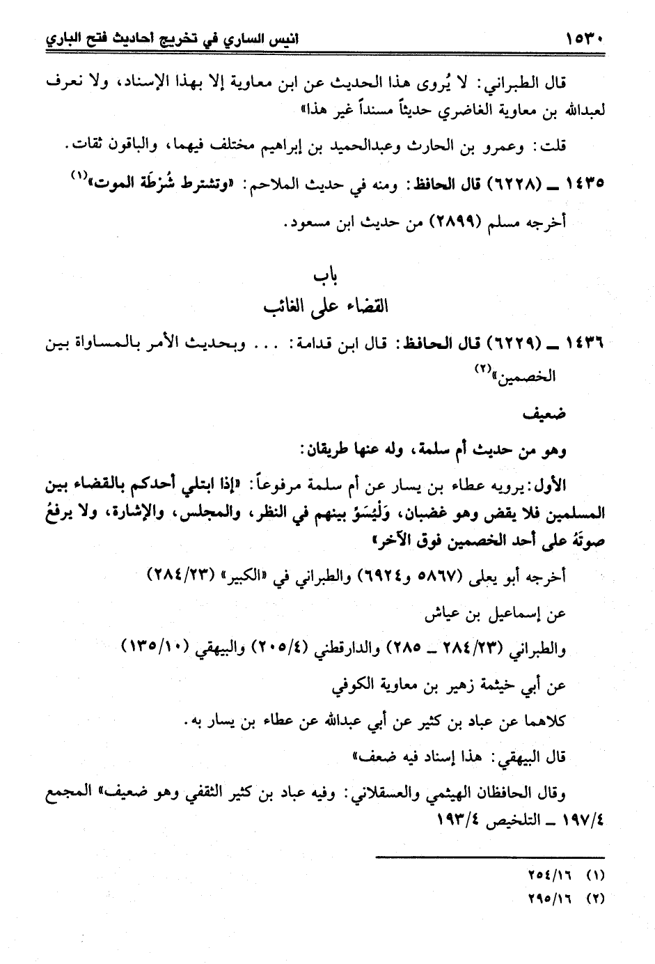 1436 - (6229) قال الحافظ: قال ابن قدامة: ... وبحديث الأمر بالمساواة بين الخصمين" (¬2)