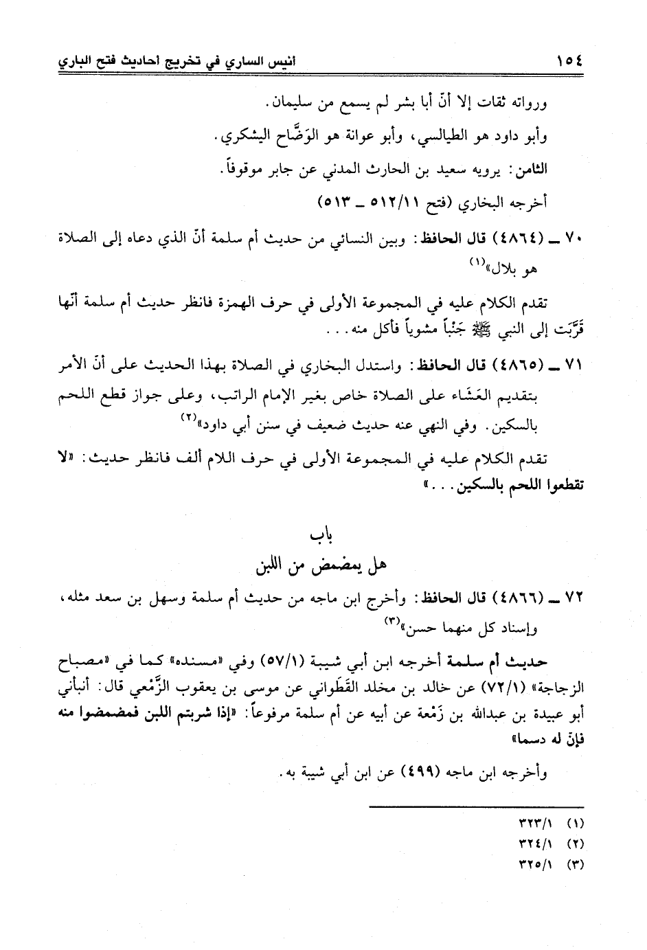 70 - (4864) قال الحافظ: وبين النسائي من حديث أم سلمة أنّ الذي دعاه إلى الصلاة هو بلال" (¬1)