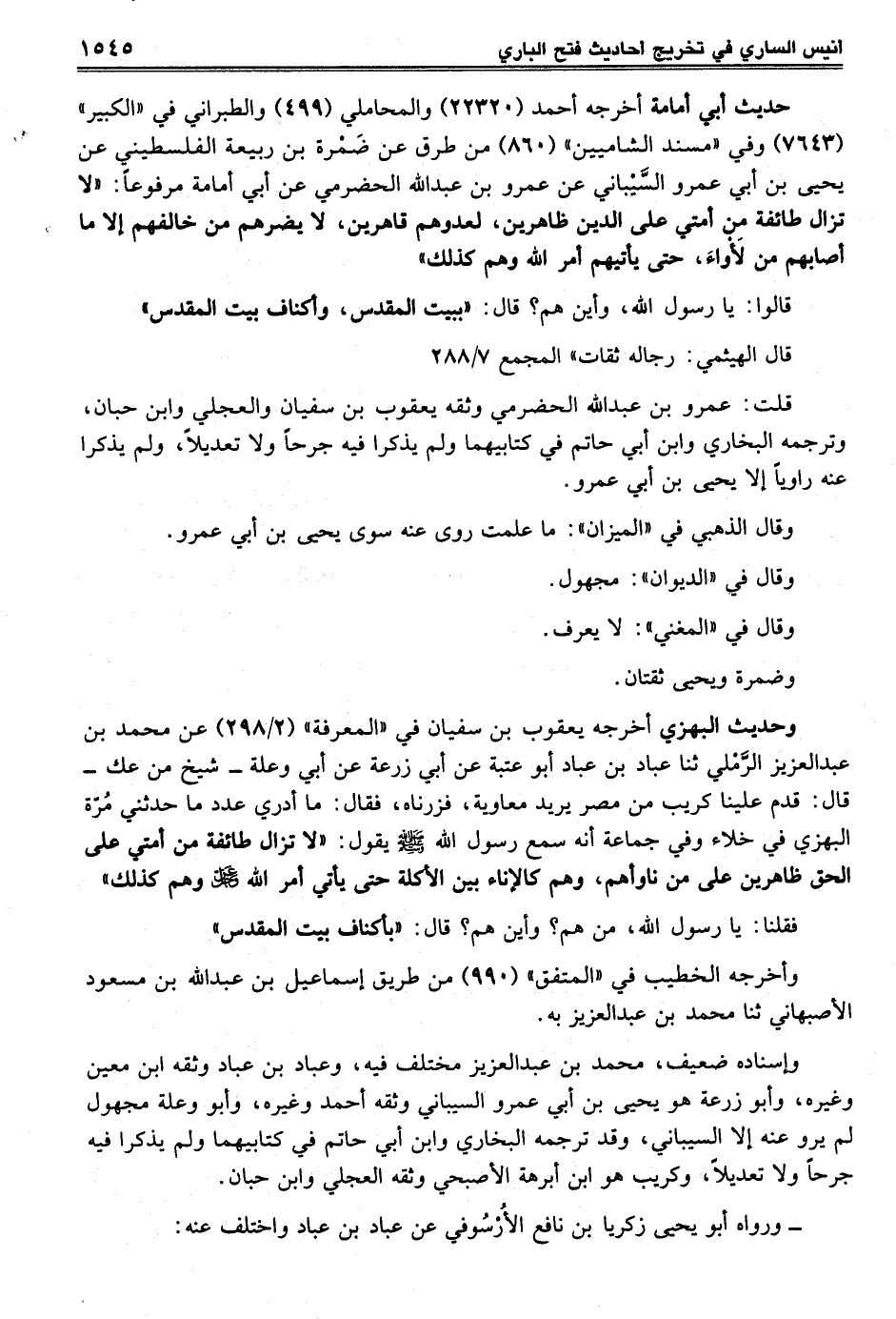 قالوا: يا رسول الله، وأين هم؟ قال: "ببيت المقدس، وأكناف بيت المقدس"