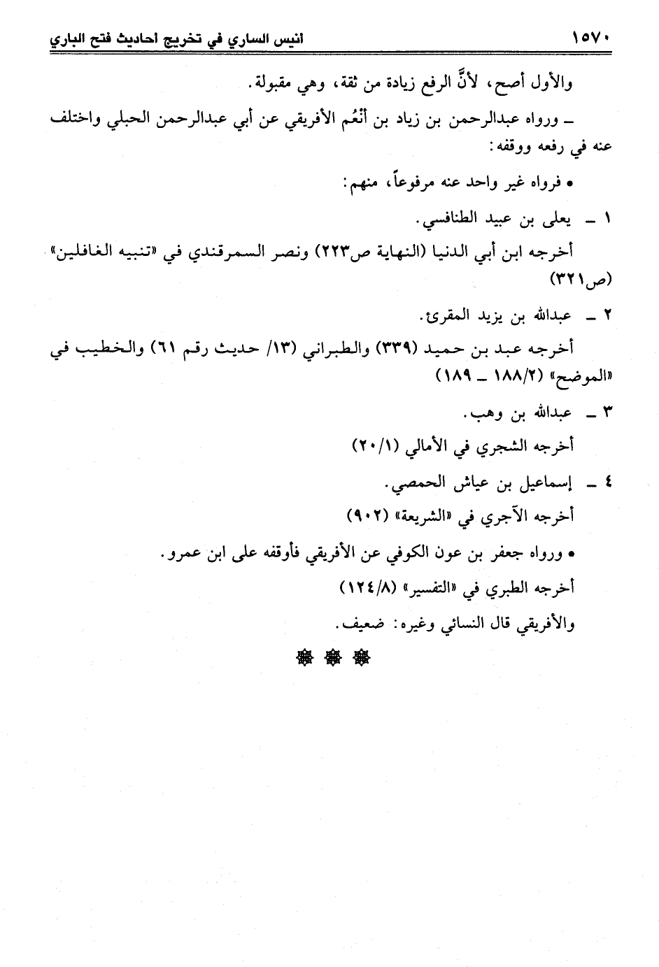 • ورواه جعفر بن عون الكوفي عن الأفريقي فأوقفه على ابن عمرو.