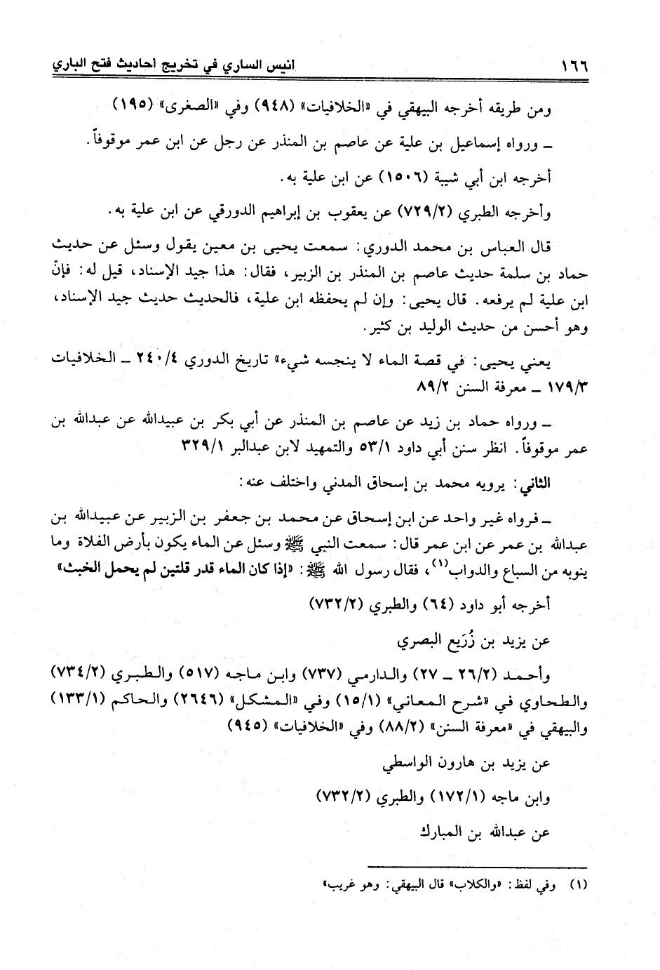 - ورواه حماد بن زيد عن عاصم بن المنذر عن أبي بكر بن عبيد الله عن عبد الله بن عمر موقوفاً. انظر سنن أبي داود 1/ 53 والتمهيد لابن عبد البر 1/ 329