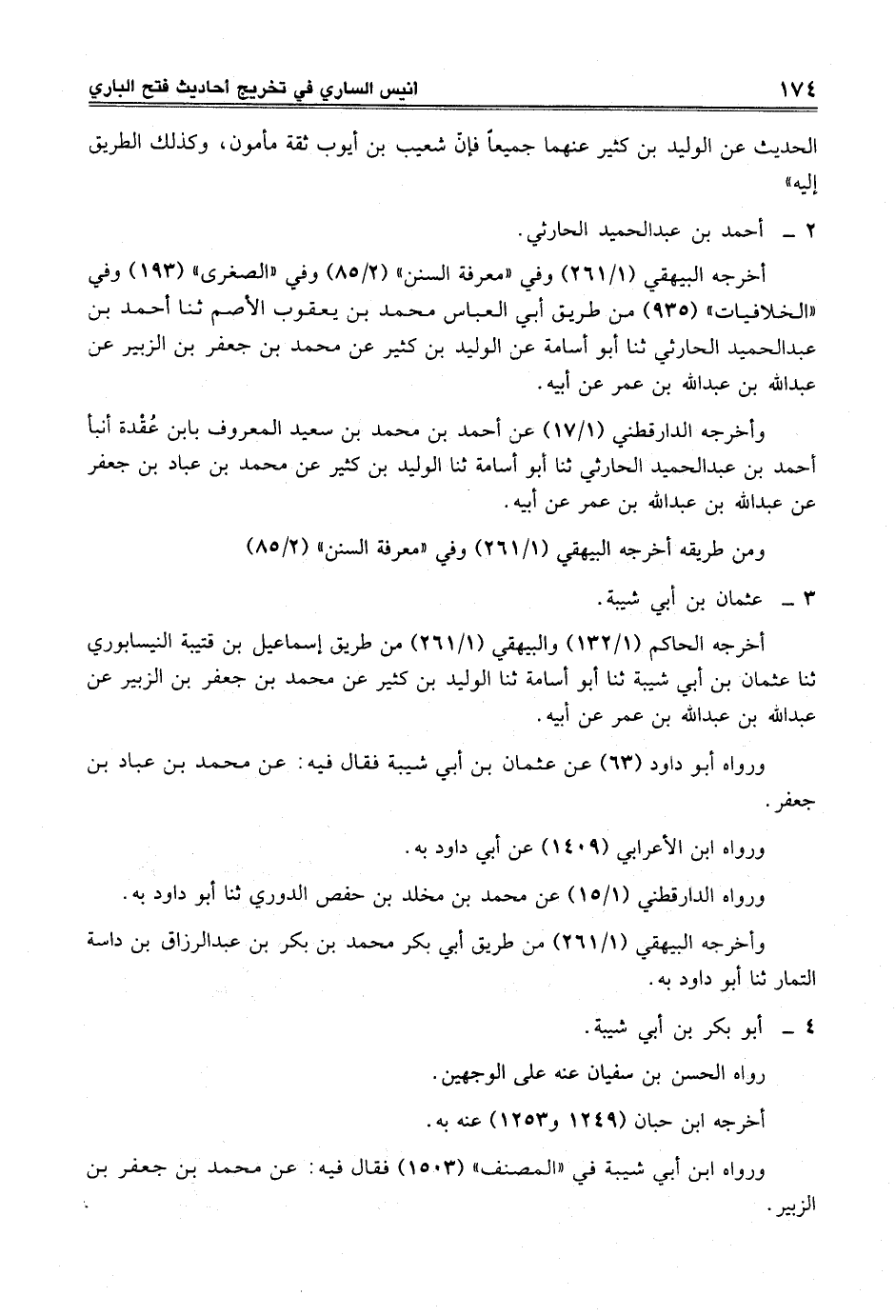 أخرجه البيهقي (1/ 261) وفي "معرفة السنن" (2/ 85) وفي "الصغرى" (193) وفي "الخلافيات" (935) من طريق أبي العباس محمد بن يعقوب الأصم ثنا أحمد بن عبد الحميد الحارثي ثنا أبو أسامة عن الوليد بن كثير عن محمد بن جعفر بن الزبير عن عبد الله بن عبد الله بن عمر عن أبيه.