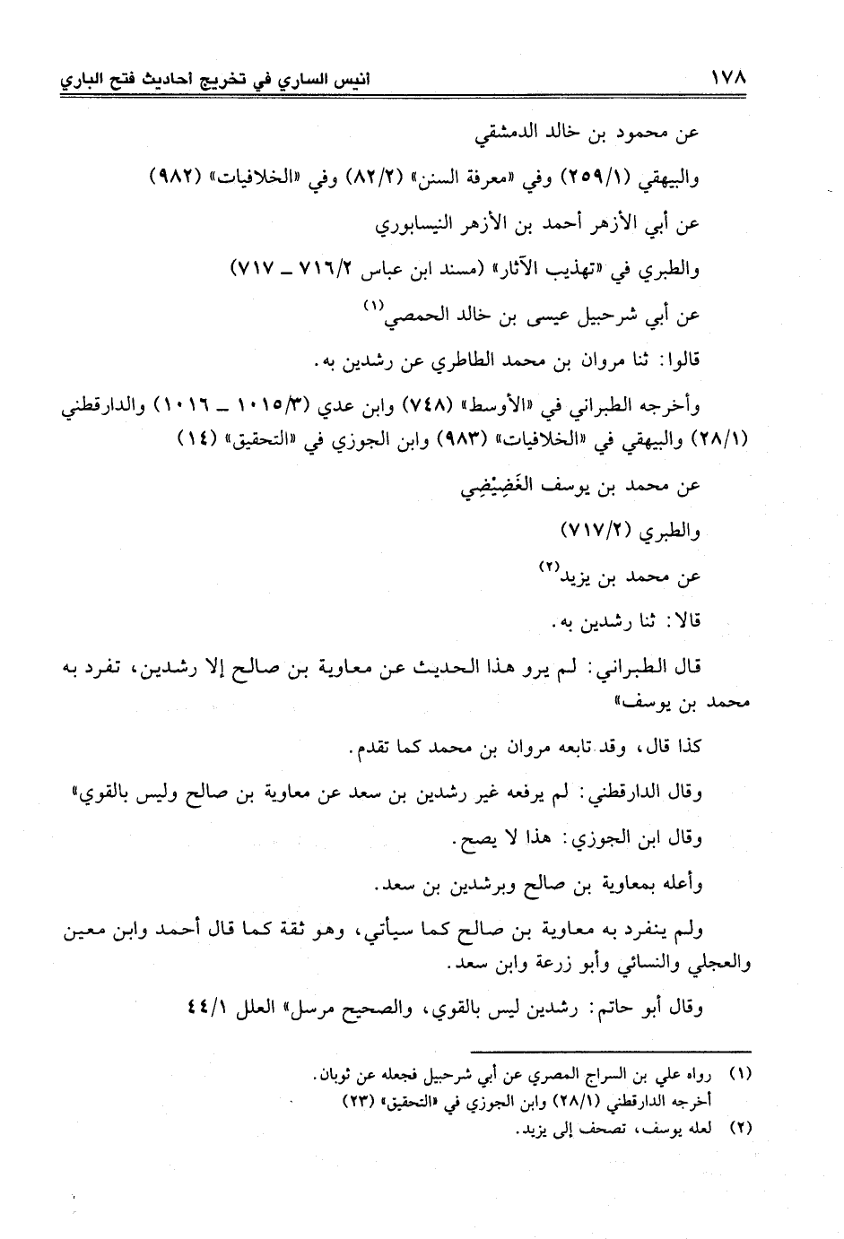 وأعله بمعاوية بن صالح وبرشدين بن سعد.
