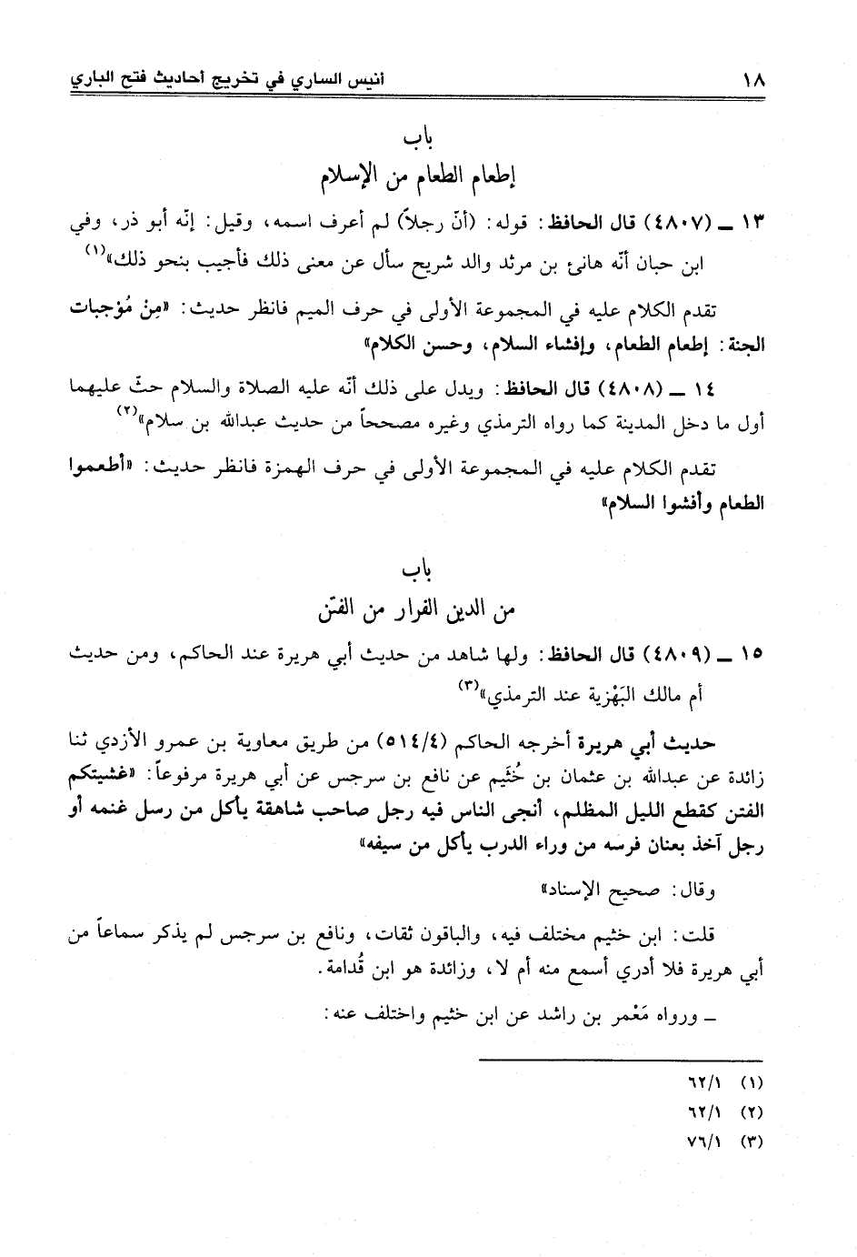 13 - (4807) قال الحافظ: قوله: (أنّ رجلاً) لم أعرف اسمه، وقيل: إنّه أبو ذر، وفي ابن حبان أنّه هانىء بن مرثد والد شريح سأل عن معنى ذلك فأجيب بنحو ذلك" (¬1).