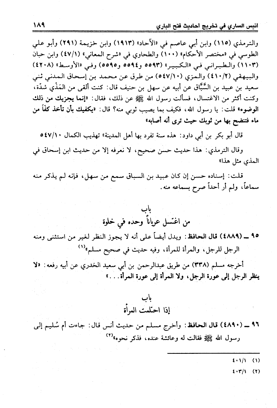 95 - (4889) قال الحافظ: ويدل أيضاً على أنه لا يجوز النظر لغير من استثنى ومنه الرجل للرجل، والمرأة للمرأة، وفيه حديث في صحيح مسلم" (¬1)