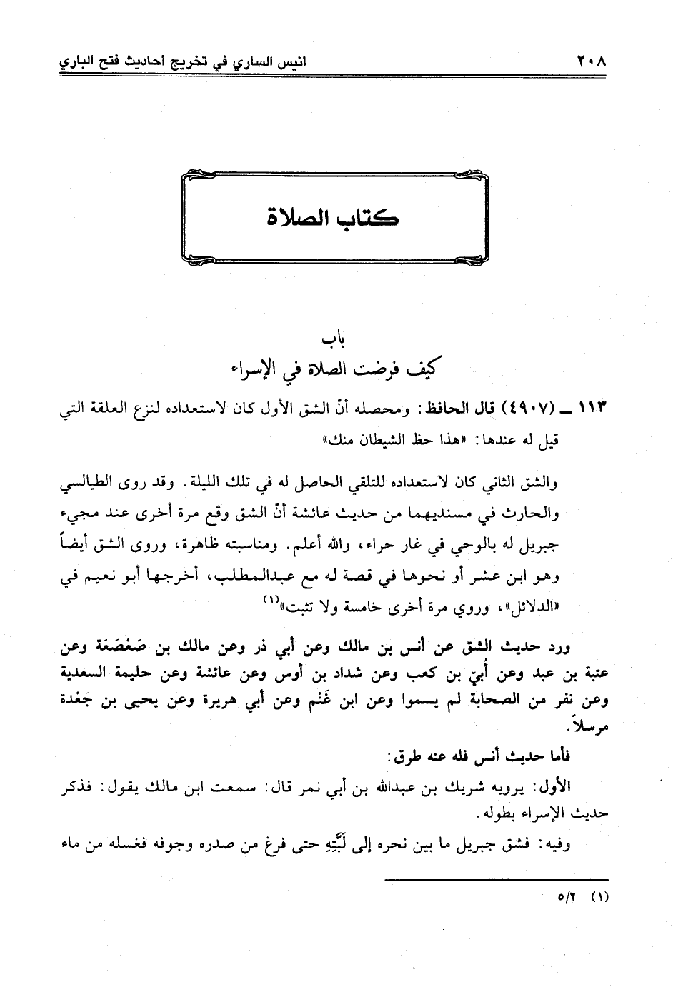 113 - (4907) قال الحافظ: ومحصله أنّ الشق الأول كان لاستعداده لنزع العلقة التي قيل له عندها: "هذا حظ الشيطان منك"
