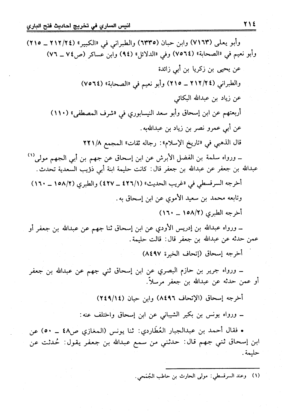 - ورواه سلمة بن الفضل الأبرش عن ابن إسحاق عن جهم بن أبي الجهم مولى (¬1) عبد الله بن جعفر عن عبد الله بن جعفر قال: كانت حليمة ابنة أبي ذؤيب السعدية تحدث.