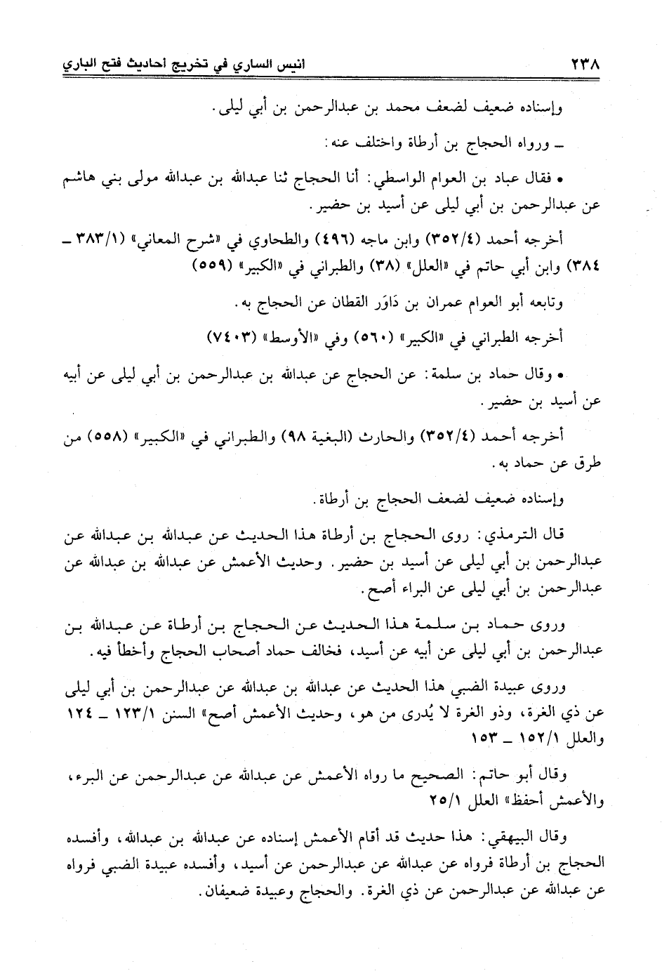 • فقال عباد بن العوام الواسطي: أنا الحجاج ثنا عبد الله بن عبد الله مولى بني هاشم عن عبد الرحمن بن أبي ليلى عن أسيد بن حضير.