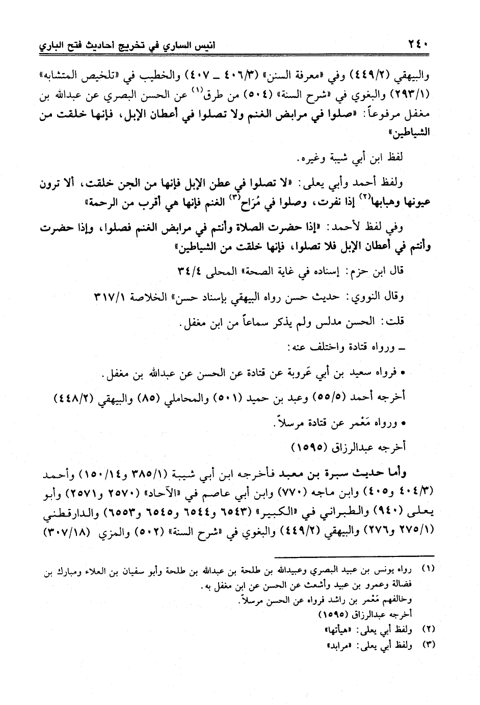 (¬1) رواه يونس بن عبيد البصري وعبيد الله بن طلحة بن عبد الله بن طلحة وأبو سفيان بن العلاء ومبارك بن فضالة وعمرو بن عبيد وأشعث عن الحسن عن ابن مغفل به.
