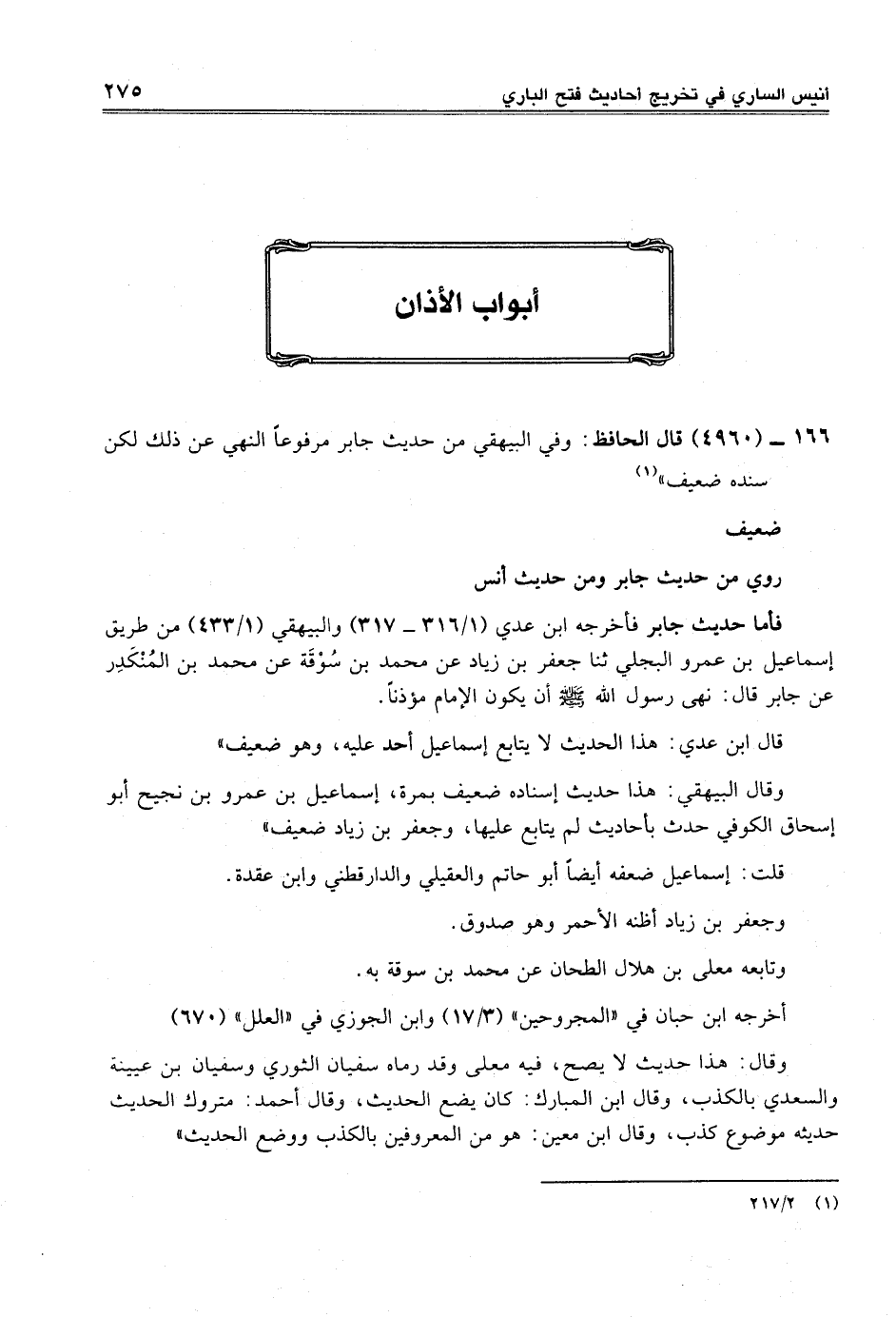166 - (4960) قال الحافظ: وفي البيهقي من حديث جابر مرفوعاً النهي عن ذلك لكن سنده ضعيف" (¬1)