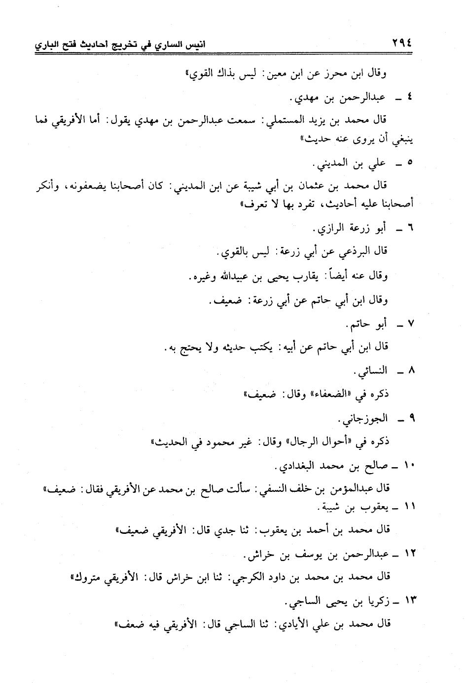 قال محمد بن علي الأيادي: ثنا الساجي قال: الأفريقي فيه ضعف"