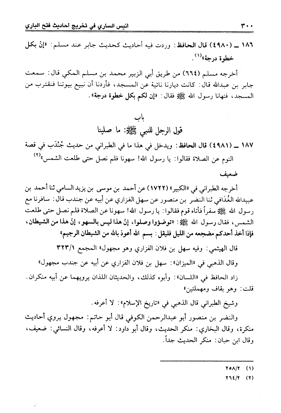 187 - (4981) قال الحافظ: ويدخل في هذا ما في الطبراني من حديث جُنْدَب في قصة النوم عن الصلاة فقالوا: يا رسول الله! سهونا فلم نصل حتى طلعت الشمس" (¬2)