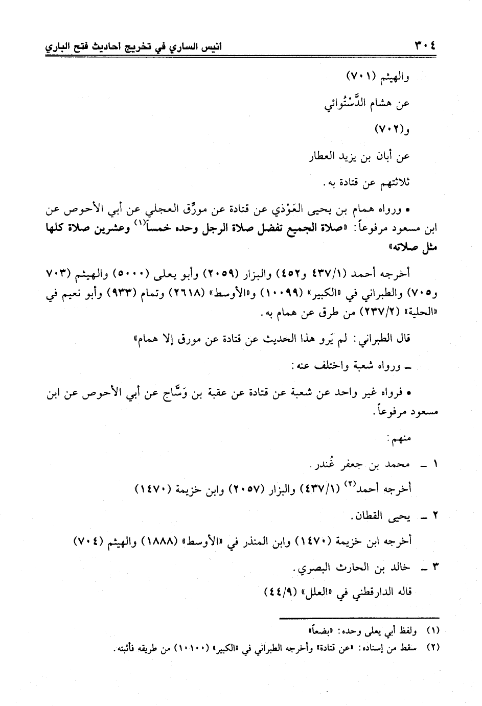 • ورواه همام بن يحيى العَوْذي عن قتادة عن مورّق العجلي عن أبي الأحوص عن ابن مسعود مرفوعاً: "صلاة الجميع تفضل صلاة الرجل وحده خمساً (¬1) وعشرين صلاة كلها مثل صلاته"