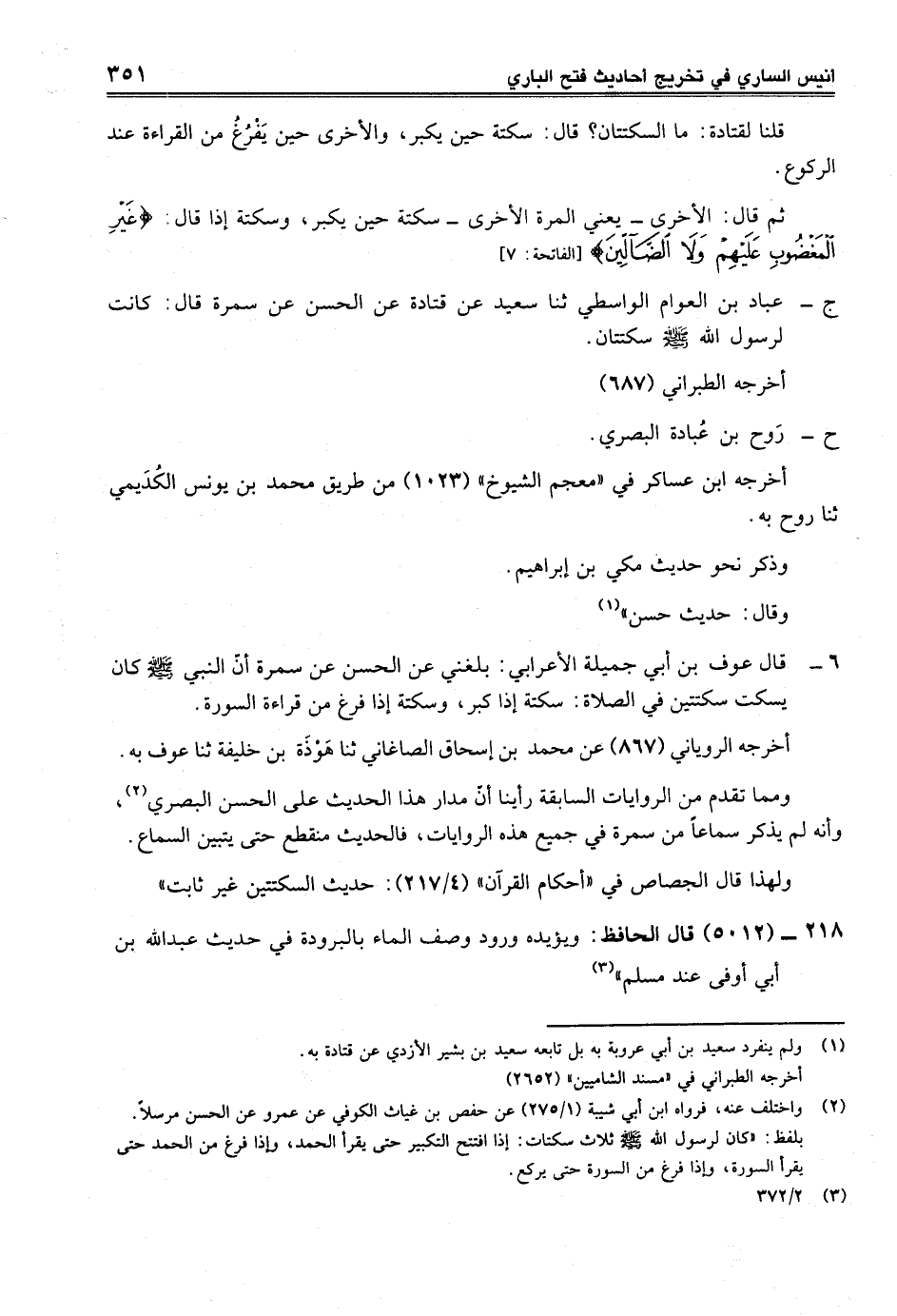 ولهذا قال الجصاص في "أحكام القرآن" (4/ 217): حديث السكتتين غير ثابت"