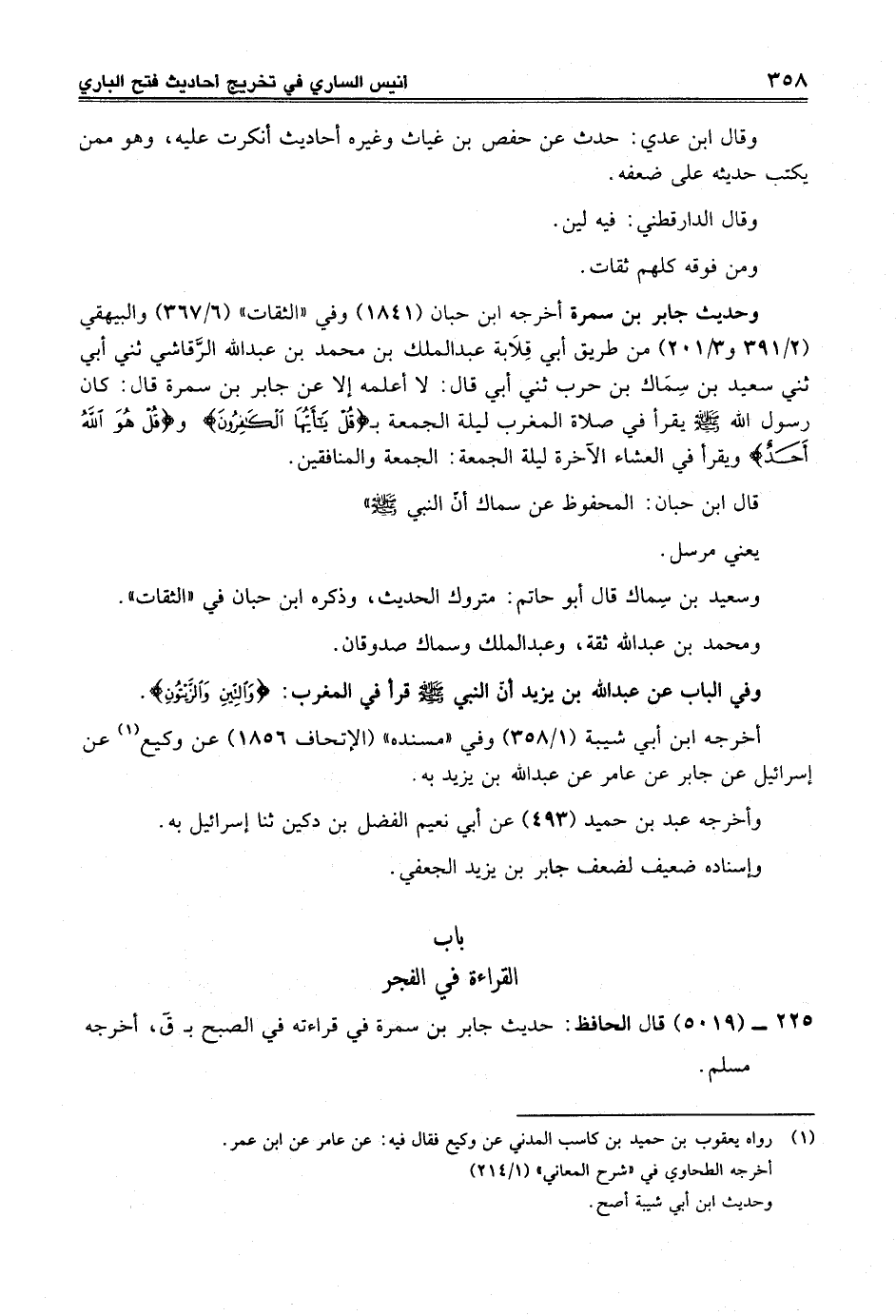 225 - (5019) قال الحافظ: حديث جابر بن سمرة في قراءته في الصبح بـ قَ، أخرجه مسلم.