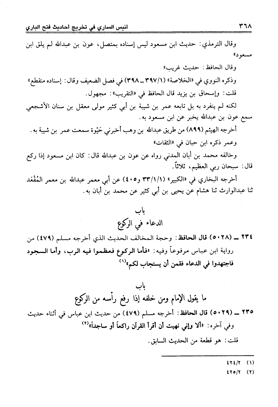 234 - (5028) قال الحافظ: وحجة المخالف الحديث الذي أخرجه مسلم (479) من رواية ابن عباس مرفوعاً وفيه: "فأما الركوع فعظموا فيه الرب، وأما السجود فاجتهدوا في الدعاء فقمن أن يستجاب لكم" (¬1)
