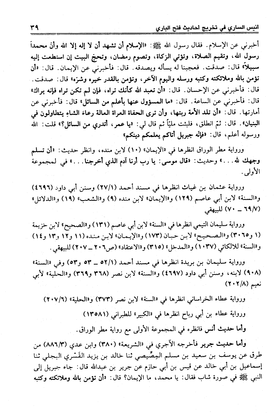 ورواية عثمان بن غياث انظرها في مسند أحمد (1/ 27) وسنن أبي داود (4696) و"السنة" لابن أبي عاصم (129) و"الإيمان" لابن منده (9) و"الشعب" (19) و"الدلائل" (7/ 69 - 70) للبيهقي