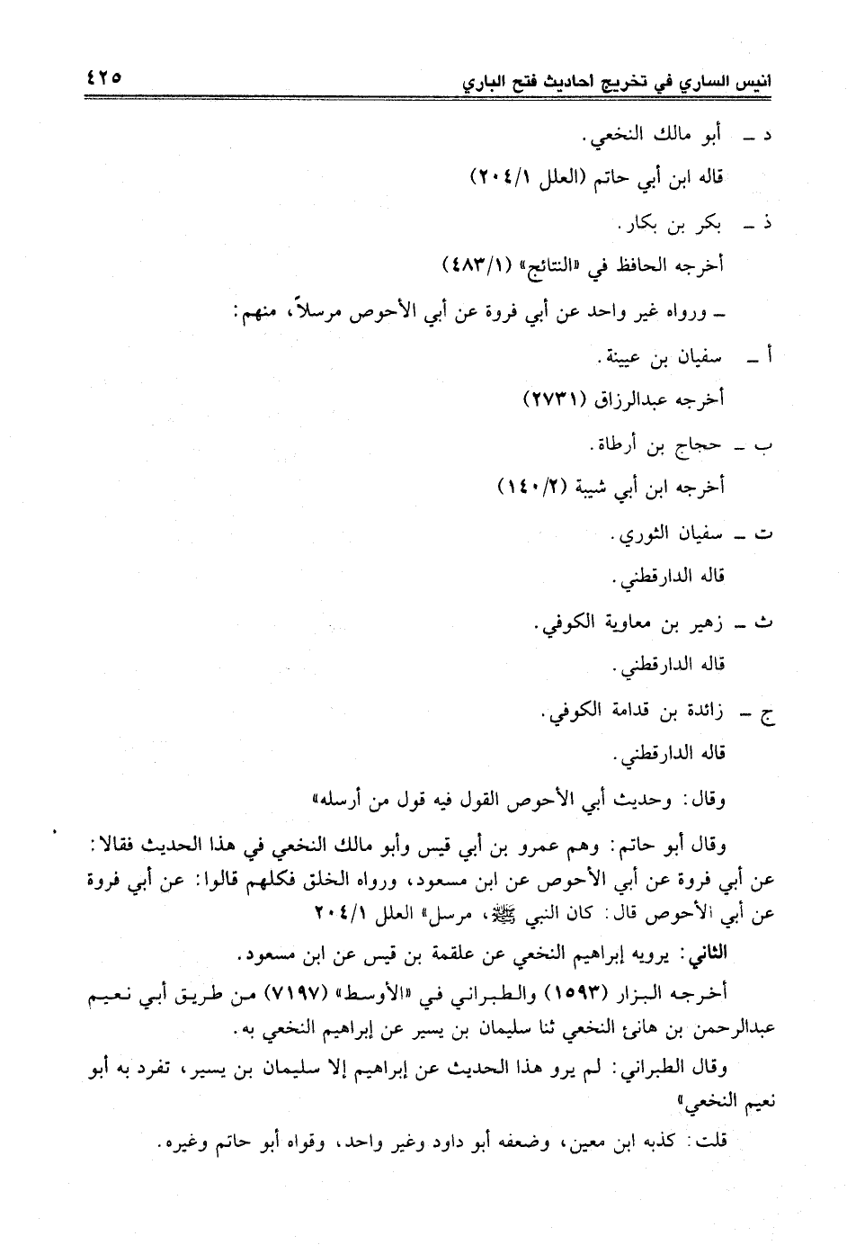 وقال أبو حاتم: وهم عمرو بن أبي قيس وأبو مالك النخعي في هذا الحديث فقالا: عن أبي فروة عن أبي الأحوص عن ابن مسعود، ورواه الخلق فكلهم قالوا: عن أبي فروة عن أبي الأحوص قال: كان النبي -صلى الله عليه وسلم-، مرسل" العلل 1/ 204
