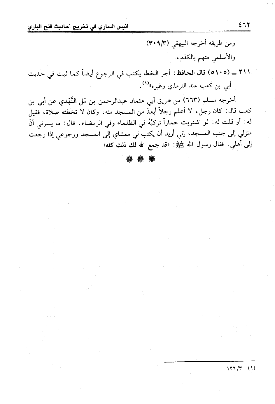 311 - (5105) قال الحافظ: أجر الخطأ يكتب في الرجوع أيضاً كما ثبت في حديث أبي بن كعب عند الترمذي وغيره" (¬1).