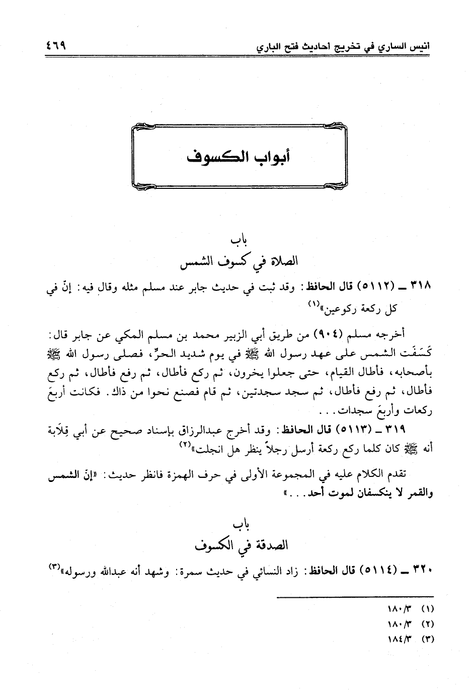 318 - (5112) قال الحافظ: وقد ثبت في حديث جابر عند مسلم مثله وقال فيه: إنّ في كل ركعة ركوعين" (¬1)