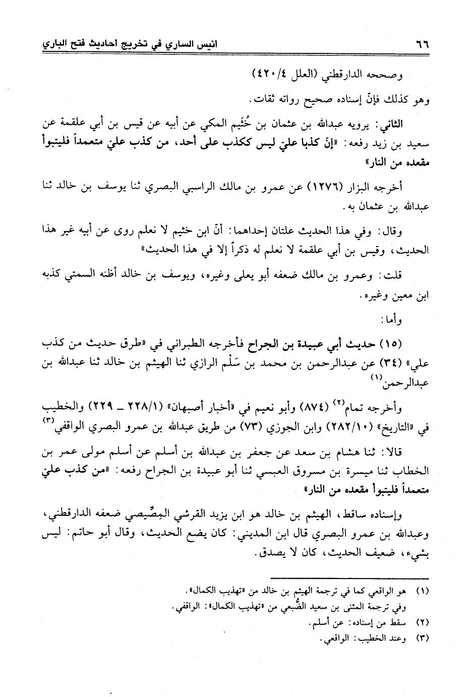 (15) حديث أبي عبيدة بن الجراح فأخرجه الطبراني في "طرق حديث من كذب علي" (34) عن عبد الرحمن بن محمد بن سَلْم الرازي ثنا الهيثم بن خالد ثنا عبد الله بن عبد الرحمن (¬1)
