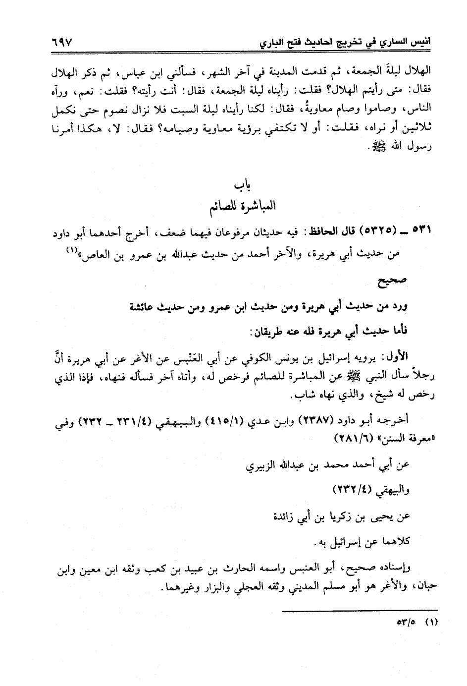 531 - (5325) قال الحافظ: فيه حديثان مرفوعان فيهما ضعف، أخرج أحدهما أبو داود من حديث أبي هريرة، والآخر أحمد من حديث عبد الله بن عمرو بن العاص" (¬1)